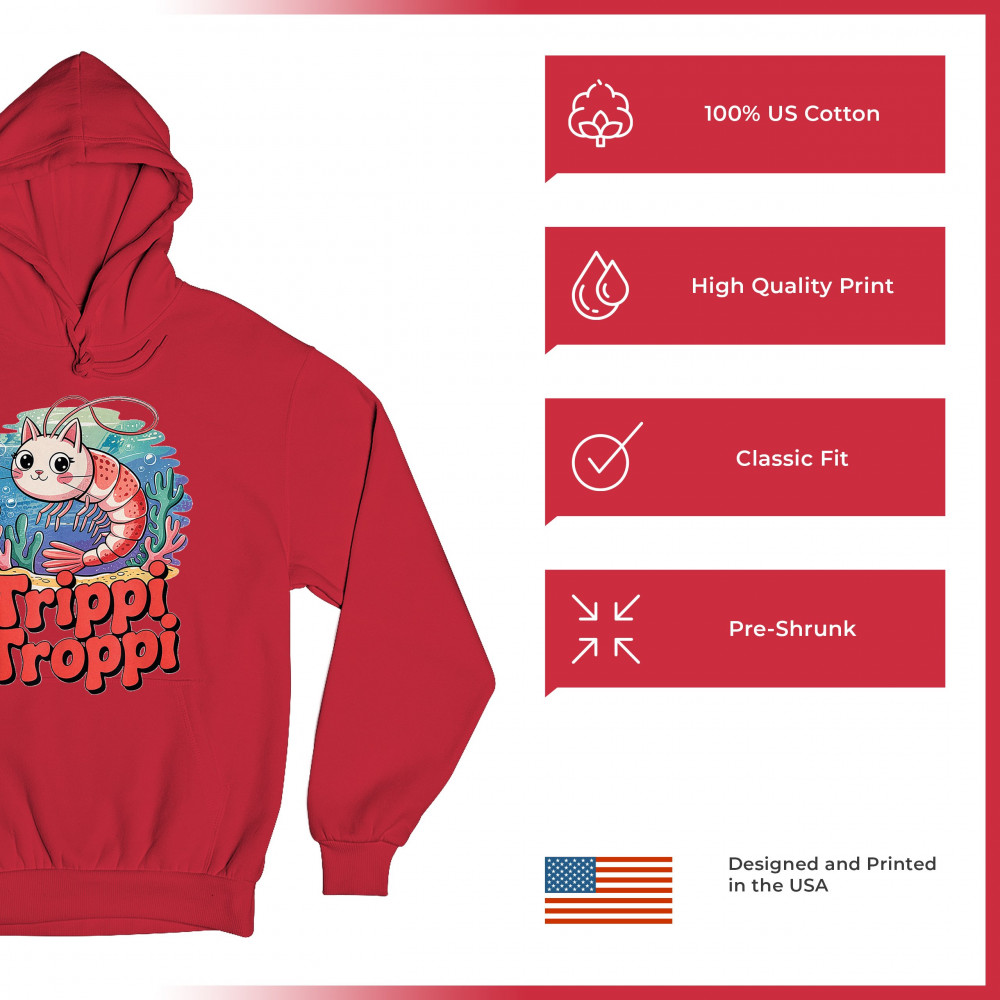 Dive deep into absurdity with Trippi Troppi—a surreal shrimp-cat fusion straight out of Italian Brainrot territory. This design captures cursed animal chaos, weirdcore visuals, TikTok meme culture, and underwater fever dream aesthetics. Made for Gen Z humor addicts, ocean meme fans, and ironic fashion lovers alike.