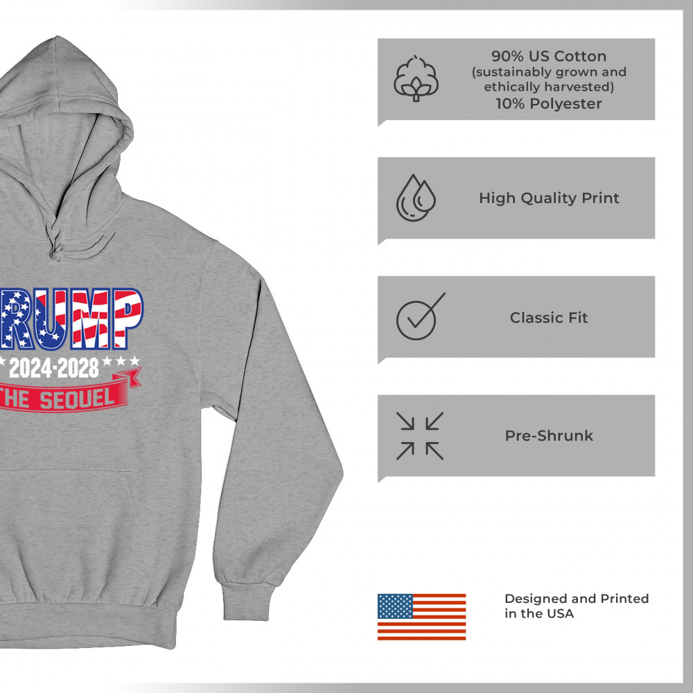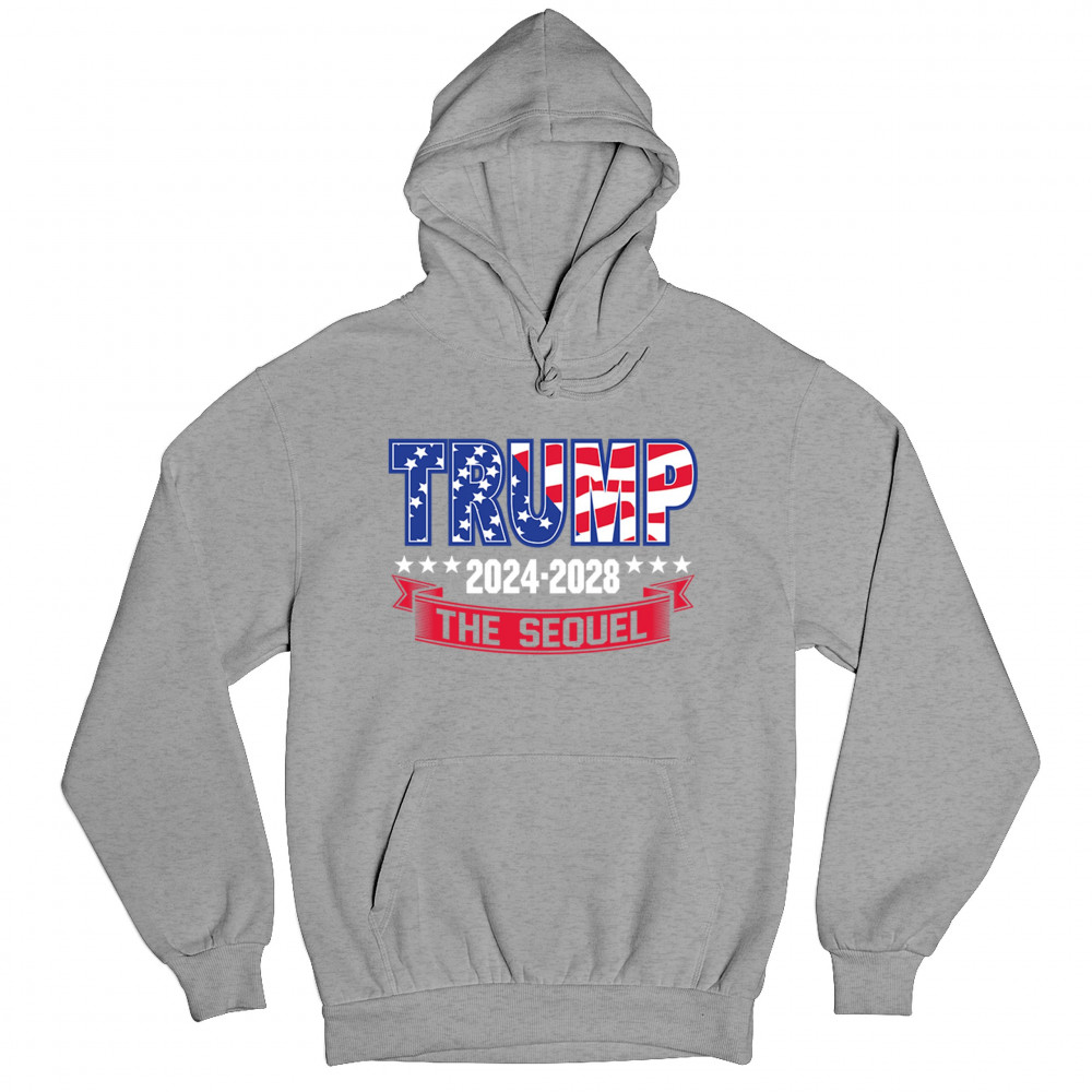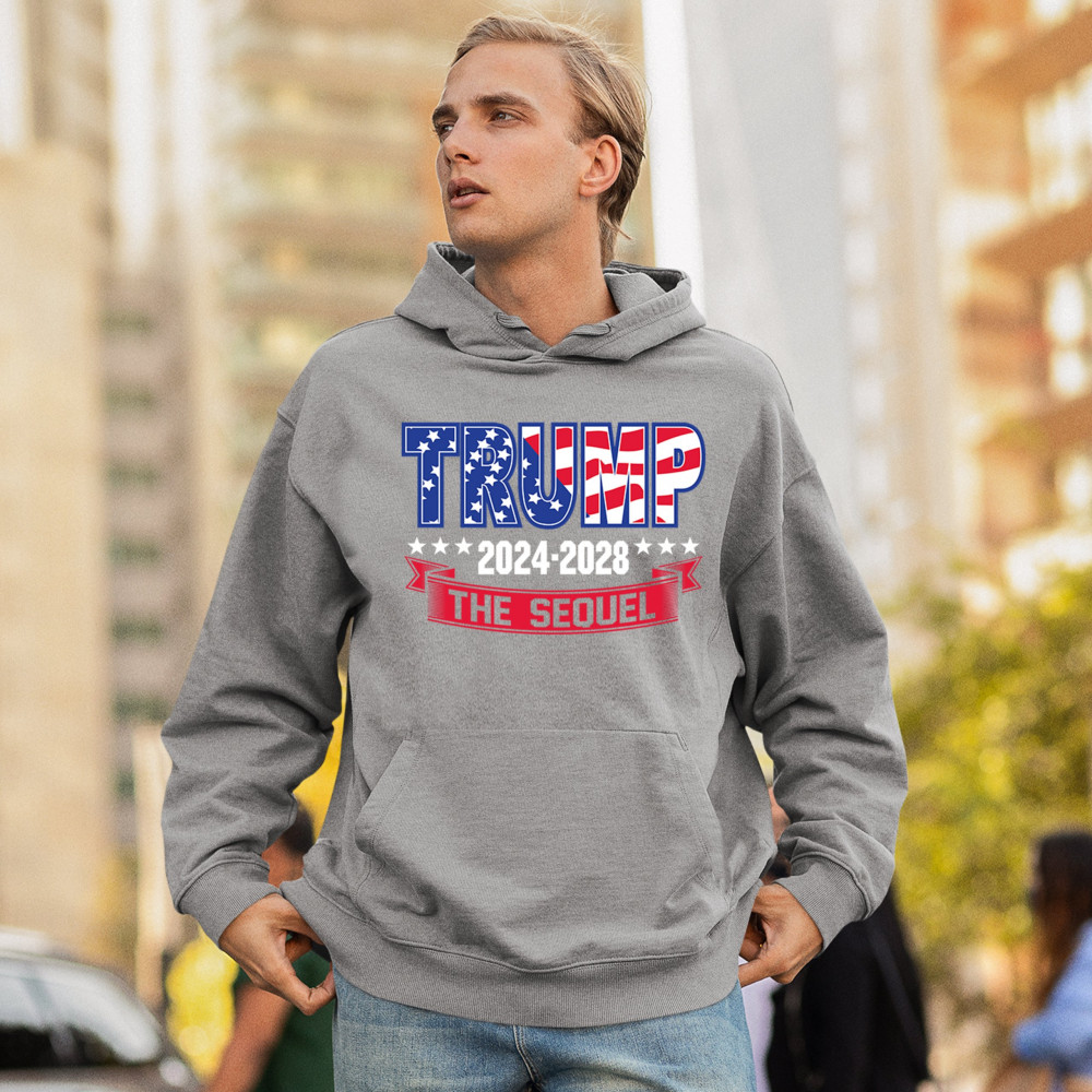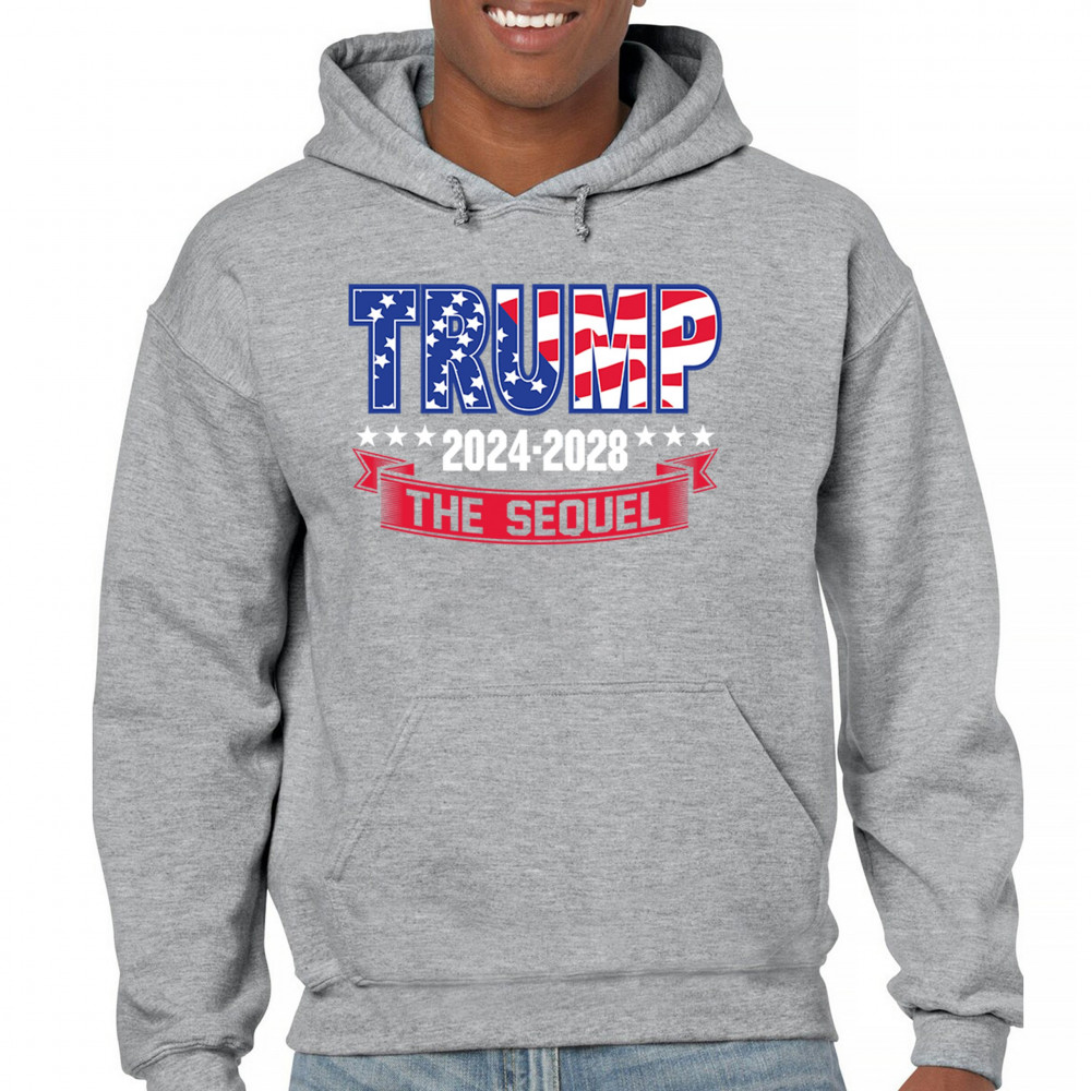 Stand with Trump for 2024-2028 in "The Sequel" design, celebrating America First, conservative values, and 4 more years of patriotic vision.