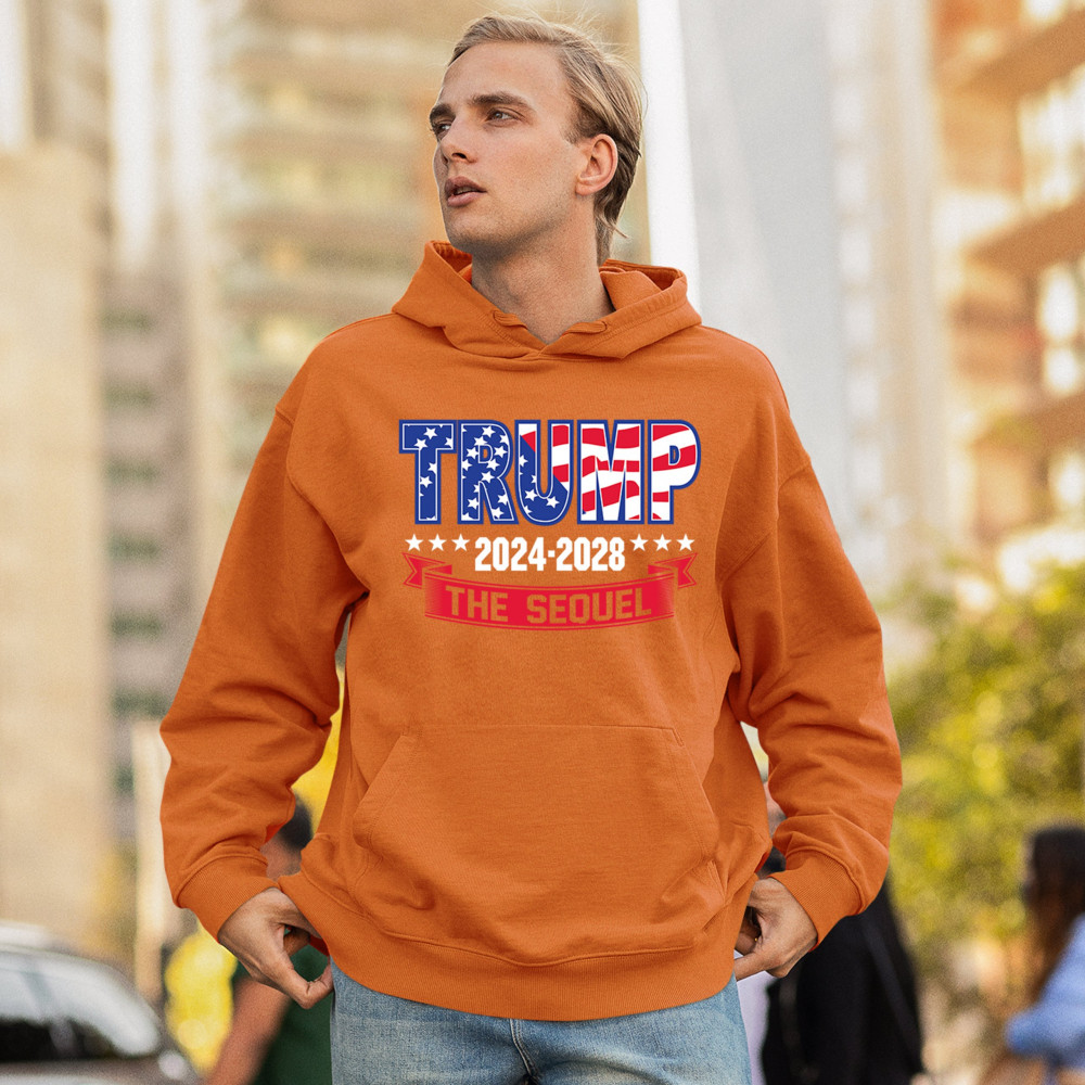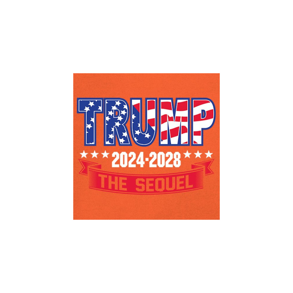 Stand with Trump for 2024-2028 in "The Sequel" design, celebrating America First, conservative values, and 4 more years of patriotic vision.
