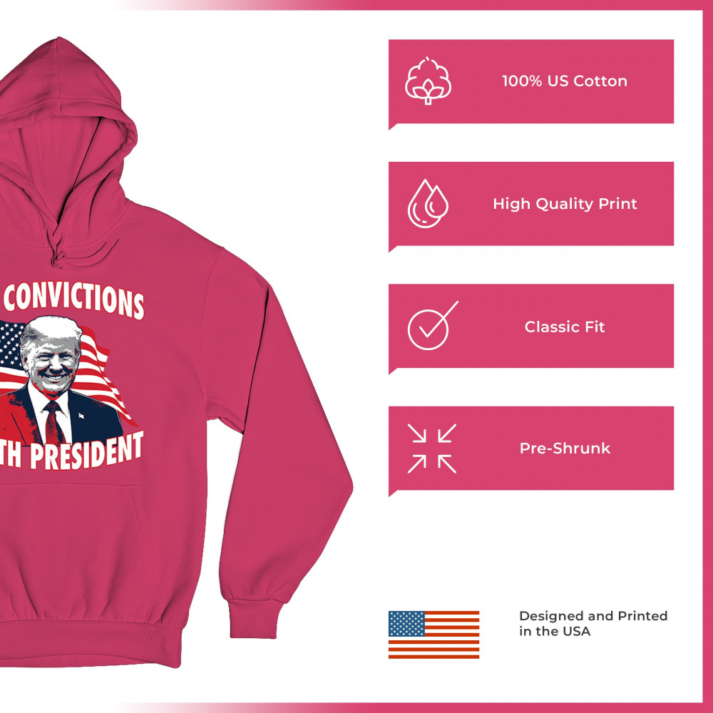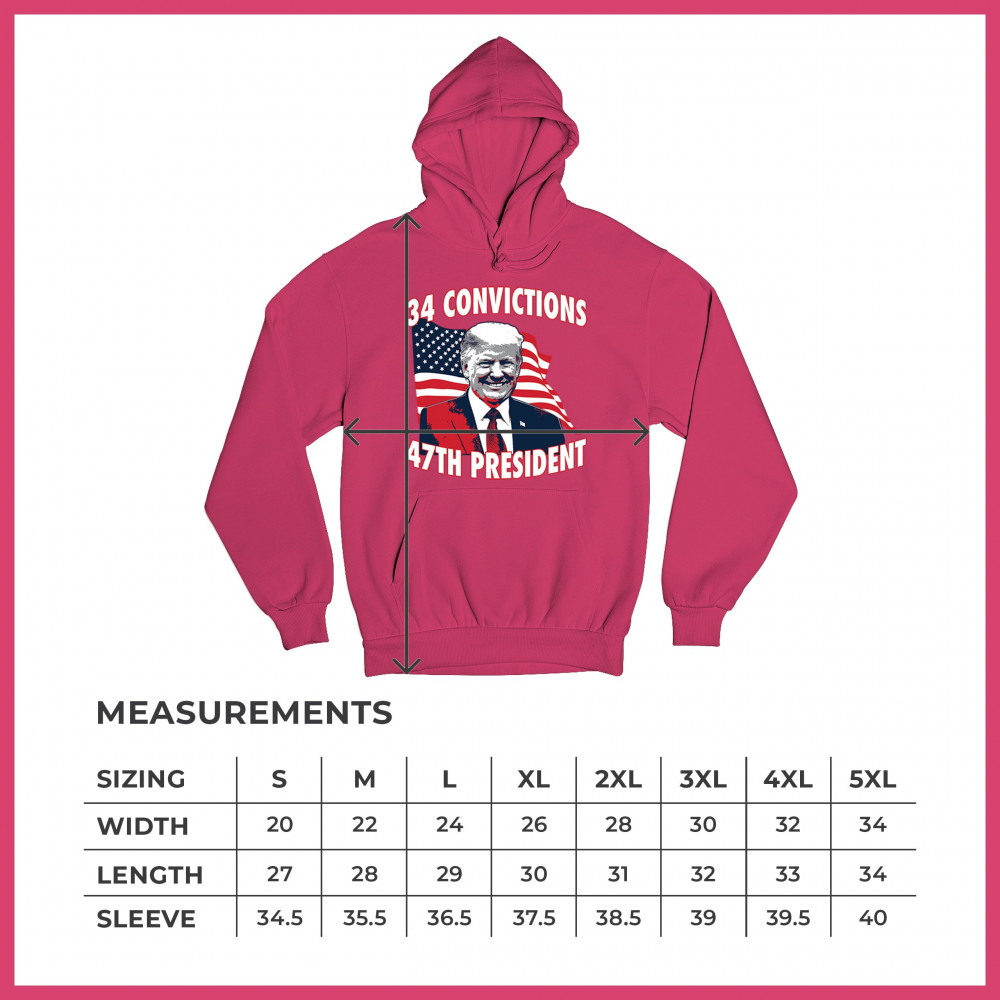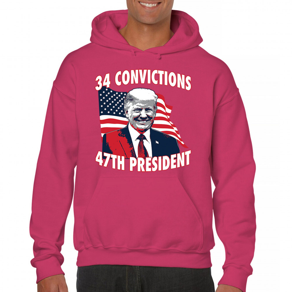 Show your support for Trump's 2024 campaign with the "34 Convictions, 47th President" design. Perfect for rallies, patriotic events, and conservative gatherings.