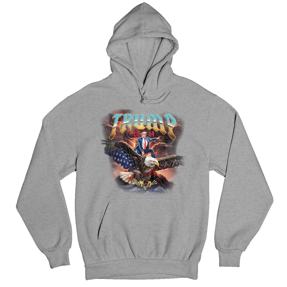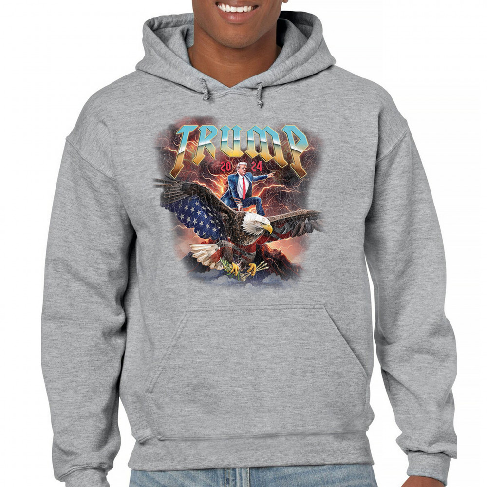 Stand out with our "Trump 2024" design featuring Trump riding an eagle. Perfect for rallies and patriotic events. Show your support with pride and confidence.