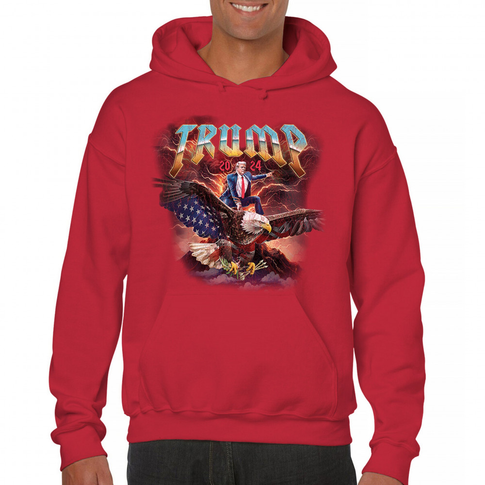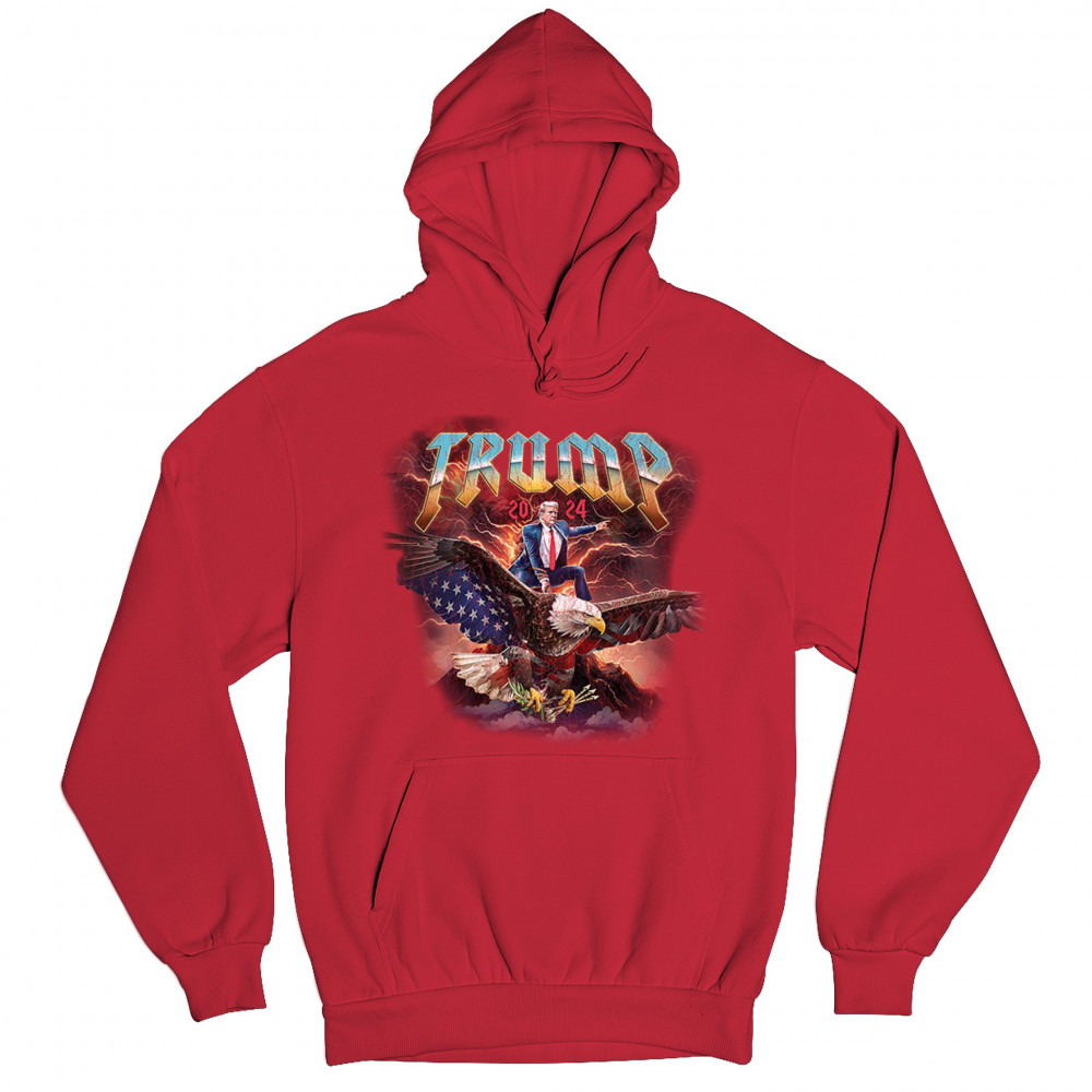 Stand out with our "Trump 2024" design featuring Trump riding an eagle. Perfect for rallies and patriotic events. Show your support with pride and confidence.