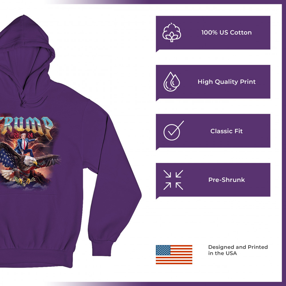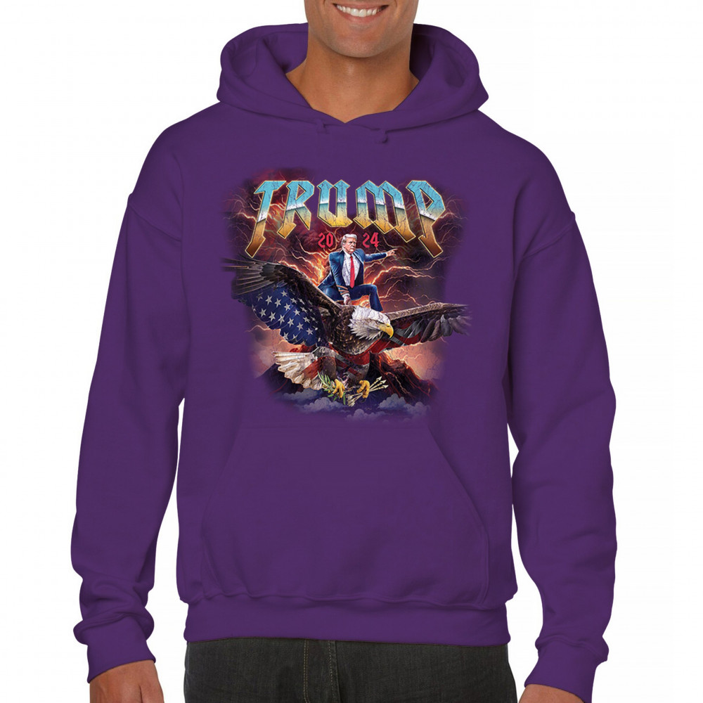 Stand out with our "Trump 2024" design featuring Trump riding an eagle. Perfect for rallies and patriotic events. Show your support with pride and confidence.