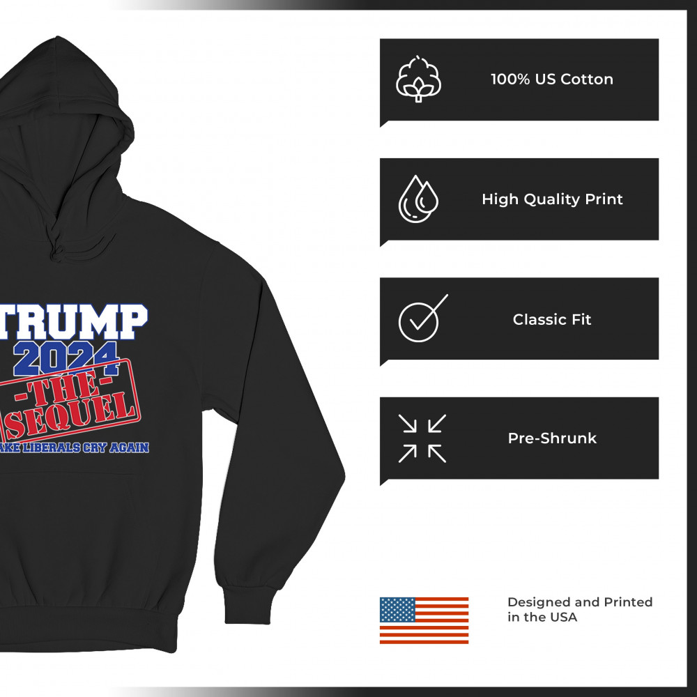 TRUMP 2024 THE SEQUEL sweatshirt make liberals cry again maga 47 fjb hoodie black