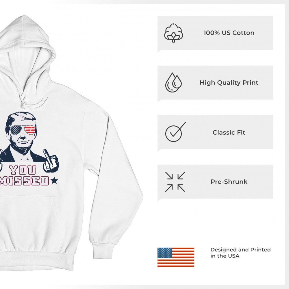 Celebrate Trump's resilience with this bold "You Missed" design. Perfect for rallies and political events. Show your unwavering support for conservative values.