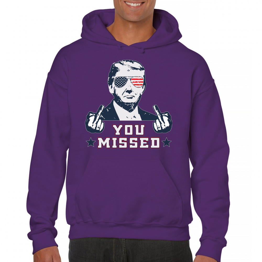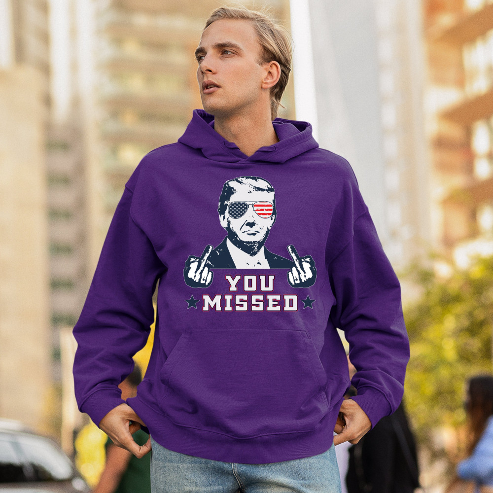 Celebrate Trump's resilience with this bold "You Missed" design. Perfect for rallies and political events. Show your unwavering support for conservative values.