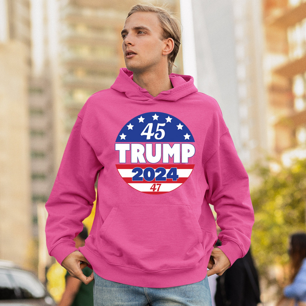 Embrace your conservative pride with this bold "45 TRUMP 2024" design. Representing America First, Republican victory, and the people’s mandate, it’s the perfect way to showcase your support for Donald J. Trump’s historic journey to the 47th presidency. Whether at rallies, political events, or casual outings, this emblem unites Trump supporters in a fight for freedom and patriotism.