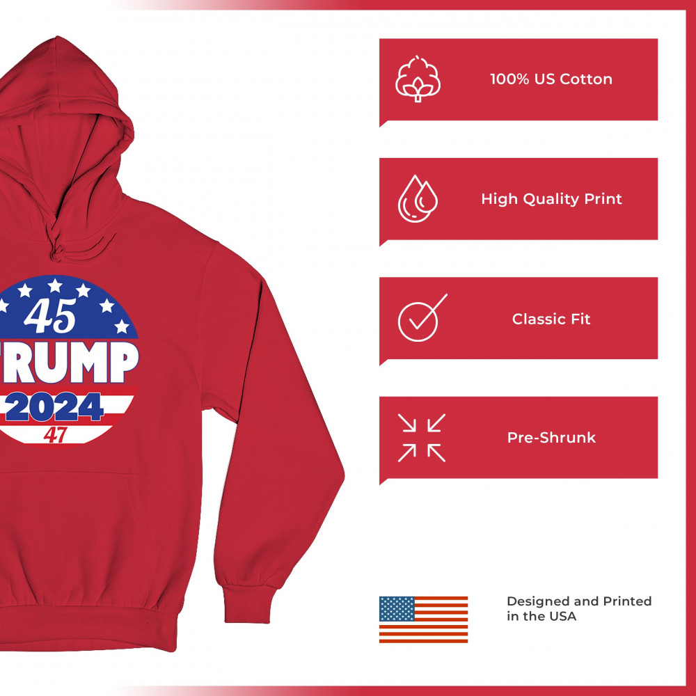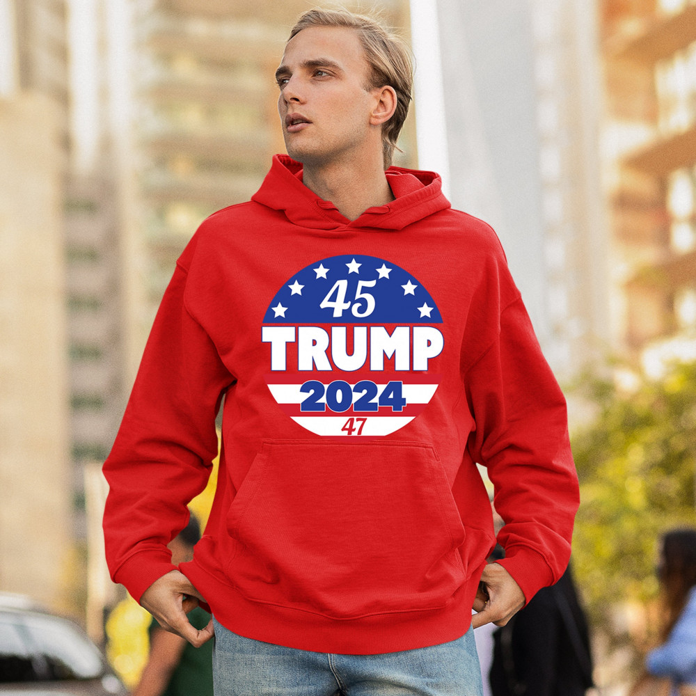 Embrace your conservative pride with this bold "45 TRUMP 2024" design. Representing America First, Republican victory, and the people’s mandate, it’s the perfect way to showcase your support for Donald J. Trump’s historic journey to the 47th presidency. Whether at rallies, political events, or casual outings, this emblem unites Trump supporters in a fight for freedom and patriotism.