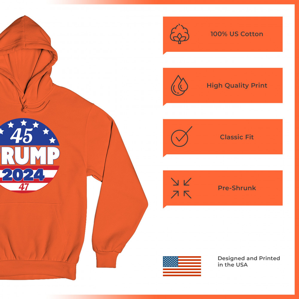 TRUMP 45 47 sweatshirt 47th president 2024 maga country america first hoodie orange