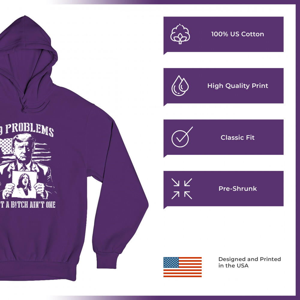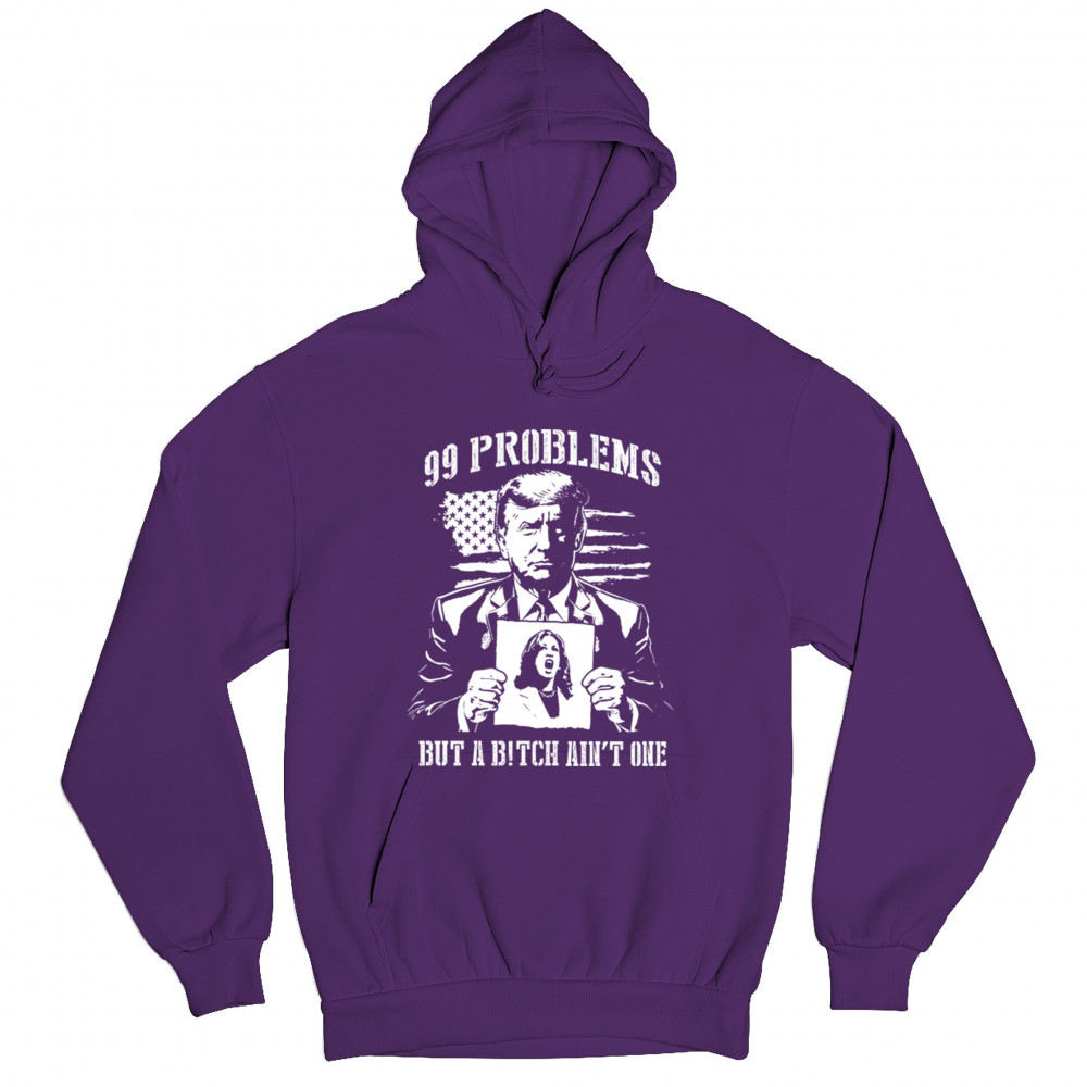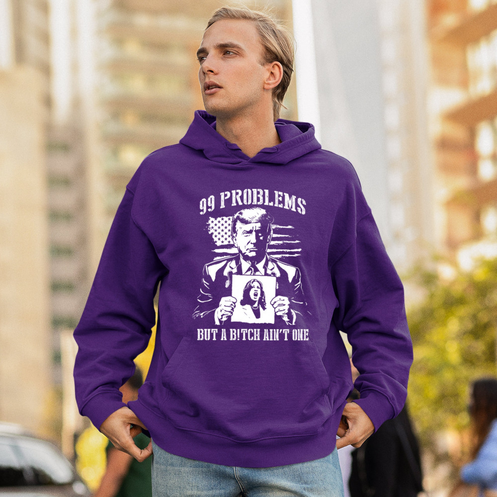 Bold conservative "99 Problems But a B*tch Ain’t One" design featuring Donald J. Trump and an American flag. Perfect for proud Republicans and patriots.