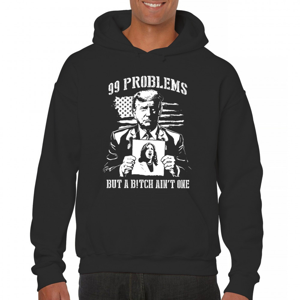 Bold conservative "99 Problems But a B*tch Ain’t One" design featuring Donald J. Trump and an American flag. Perfect for proud Republicans and patriots.