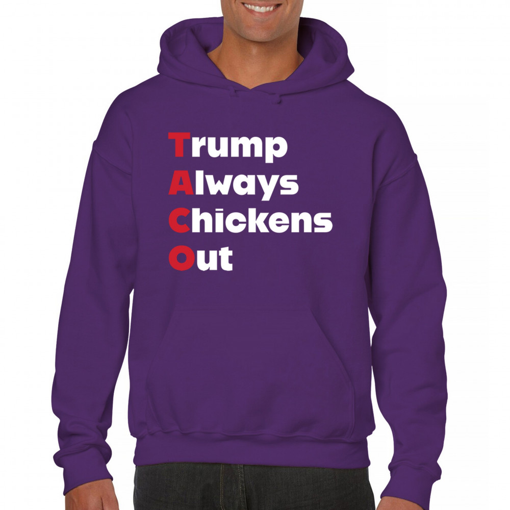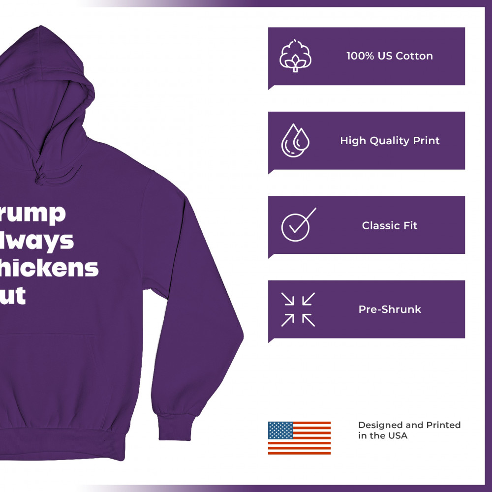 Trump Always Chickens Out is bold protest fashion for anti-dictator activists, political satire fans, and no kings supporters.