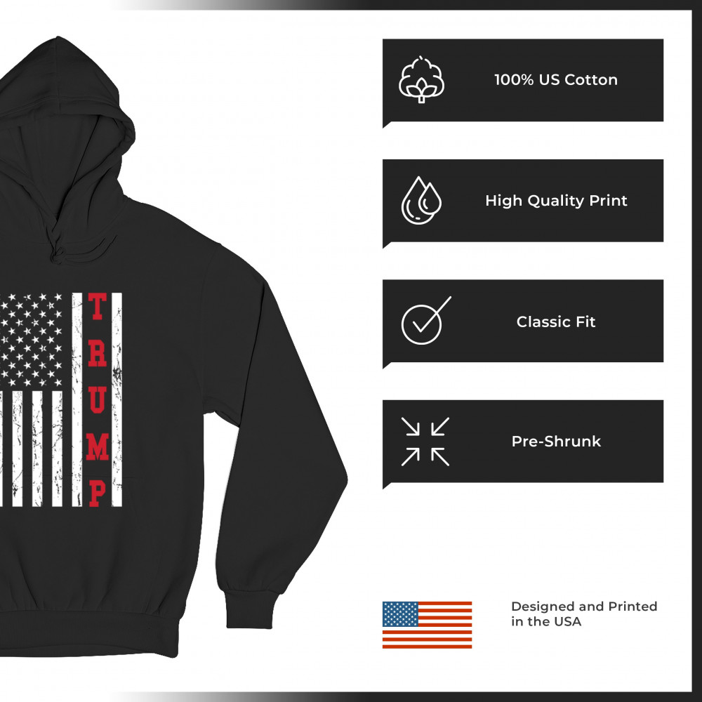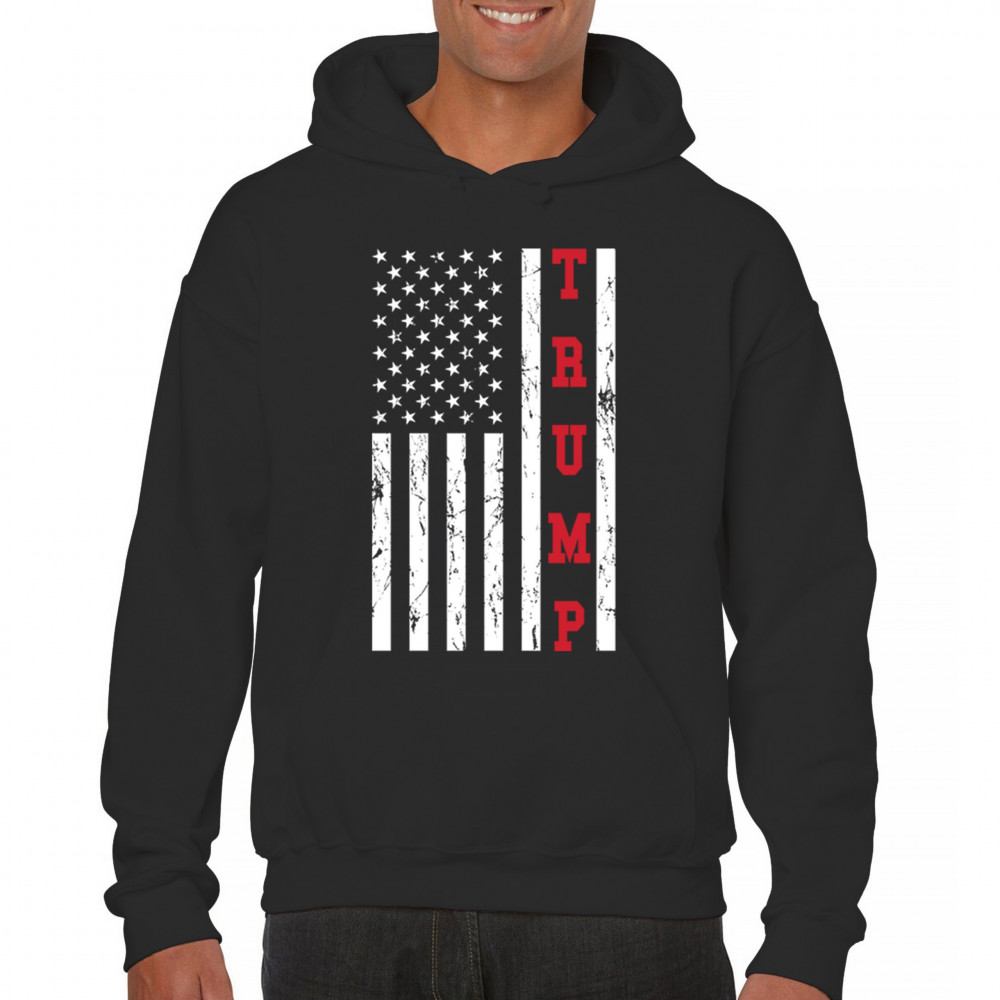 Declare your allegiance to Donald Trump and the Republican cause with our Trump 2024 Flag tee. Featuring a striking American Flag backdrop and 'Trump 2024' emblazoned proudly, this shirt embodies the spirit of Make America Great Again. Send a clear messag