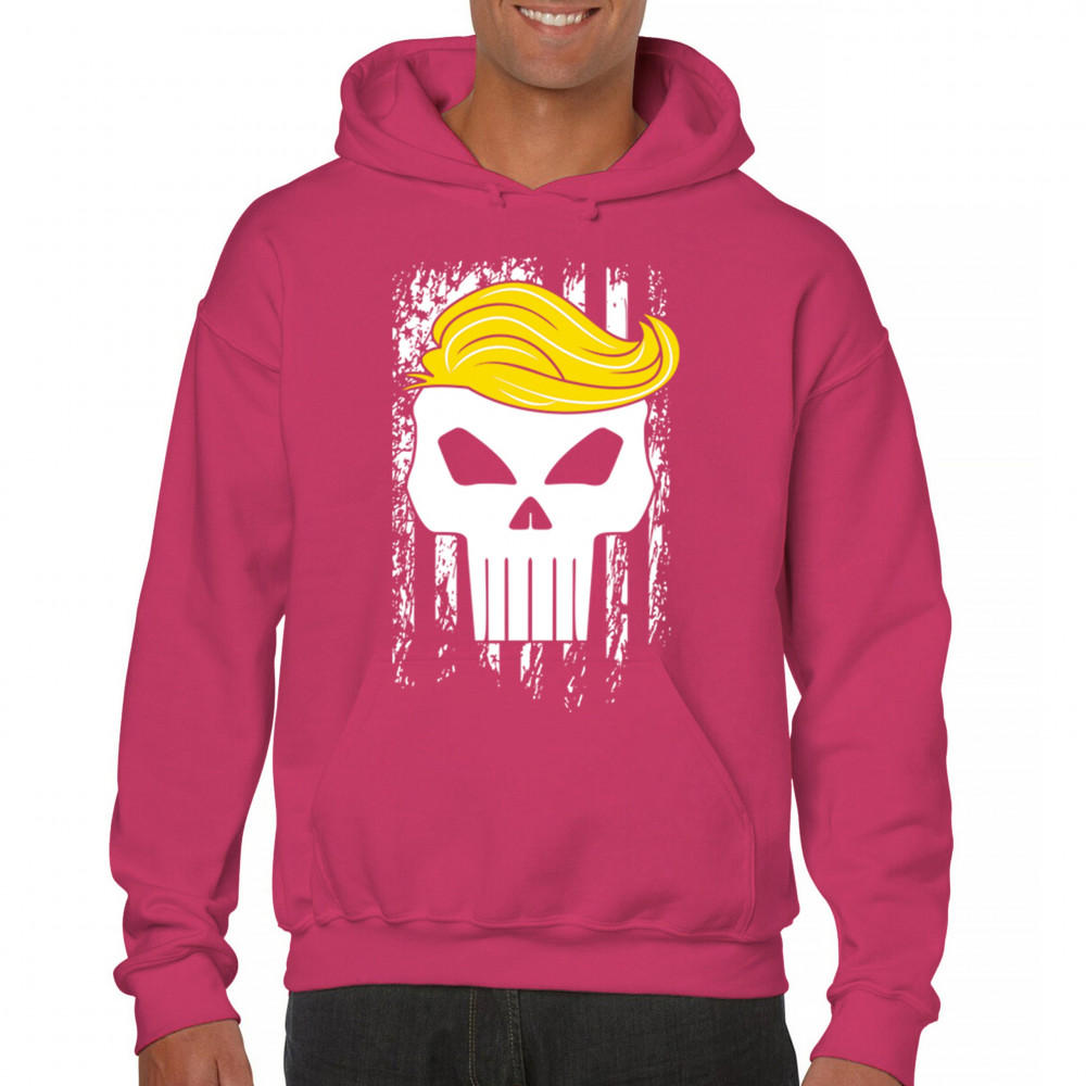 Explore our exclusive design - a symbol of unwavering support for America. Featuring a distressed flag and a skull with Trump's hair, it's perfect for patriotic conservatives