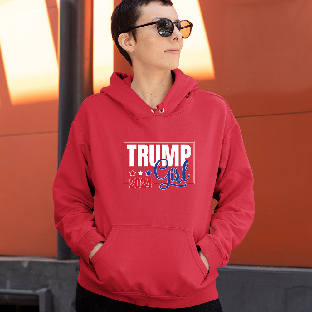 Express your unwavering support for President Trump's reelection with our 'Trump Girl 2024' graphic tee. Show your dedication to conservative values and the America First agenda as a proud Trump supporter. Let your voice be heard as you join the movement