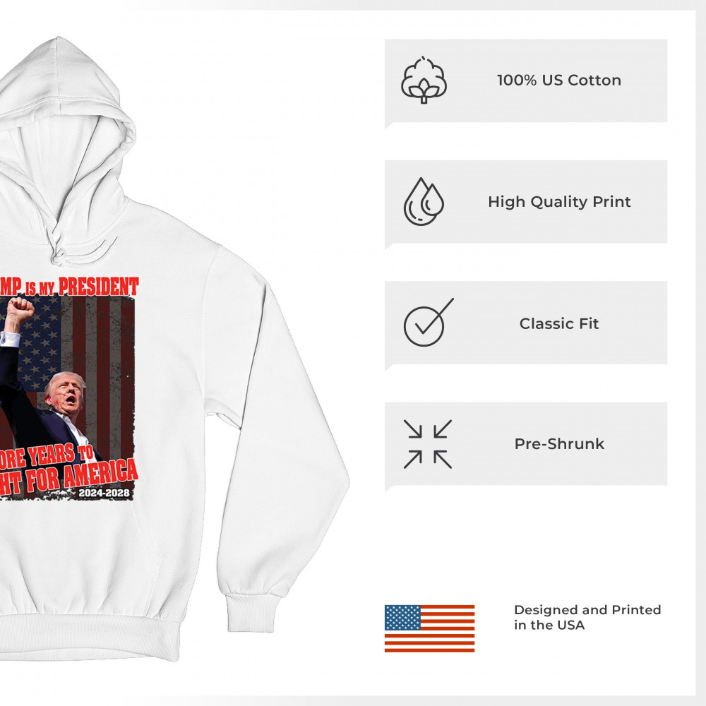 Show your support for Trump with the "4 More Years to Fight for America" design. Perfect for patriots, conservatives, and America First advocates.