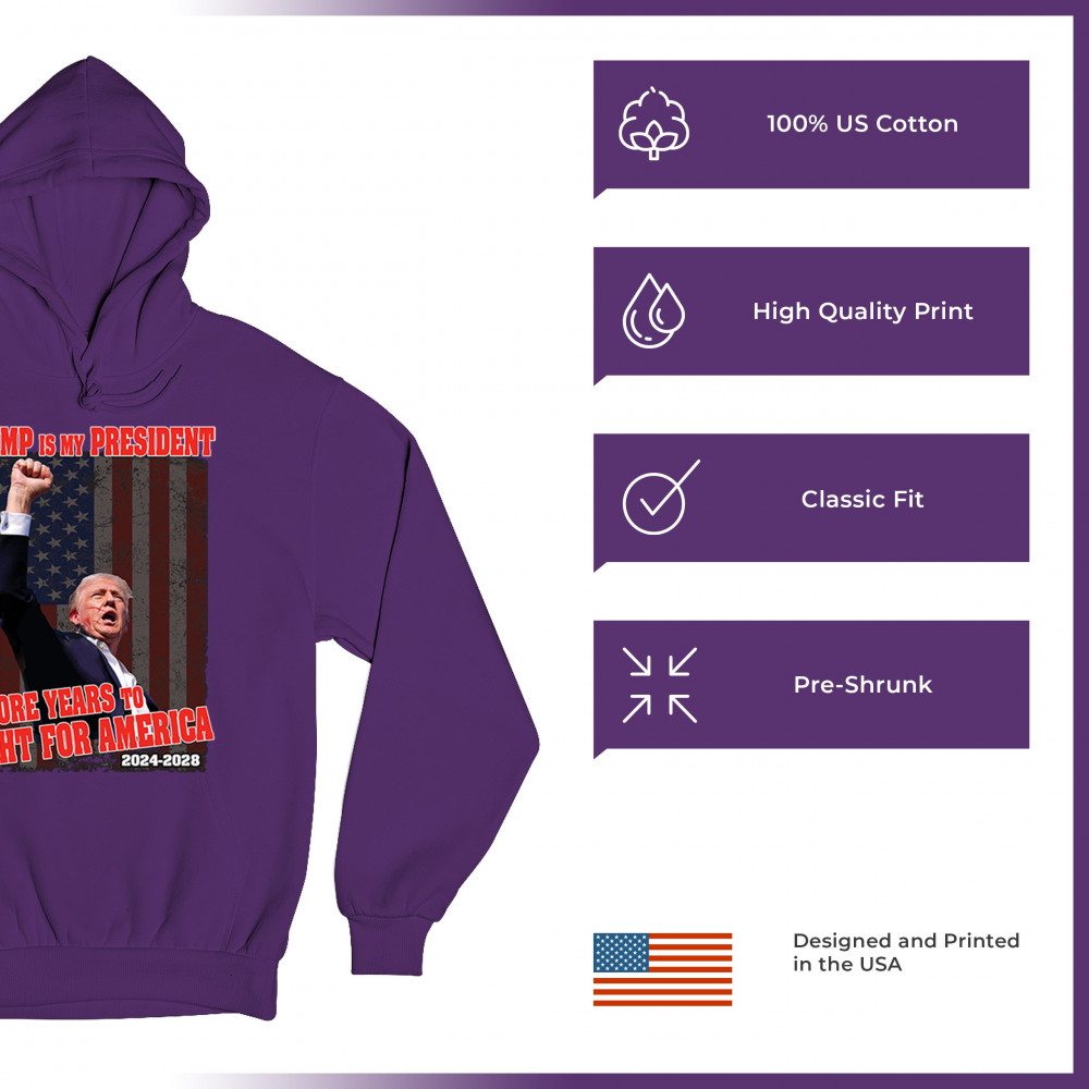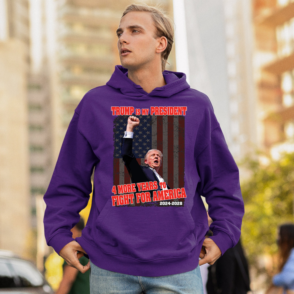 Show your support for Trump with the "4 More Years to Fight for America" design. Perfect for patriots, conservatives, and America First advocates.