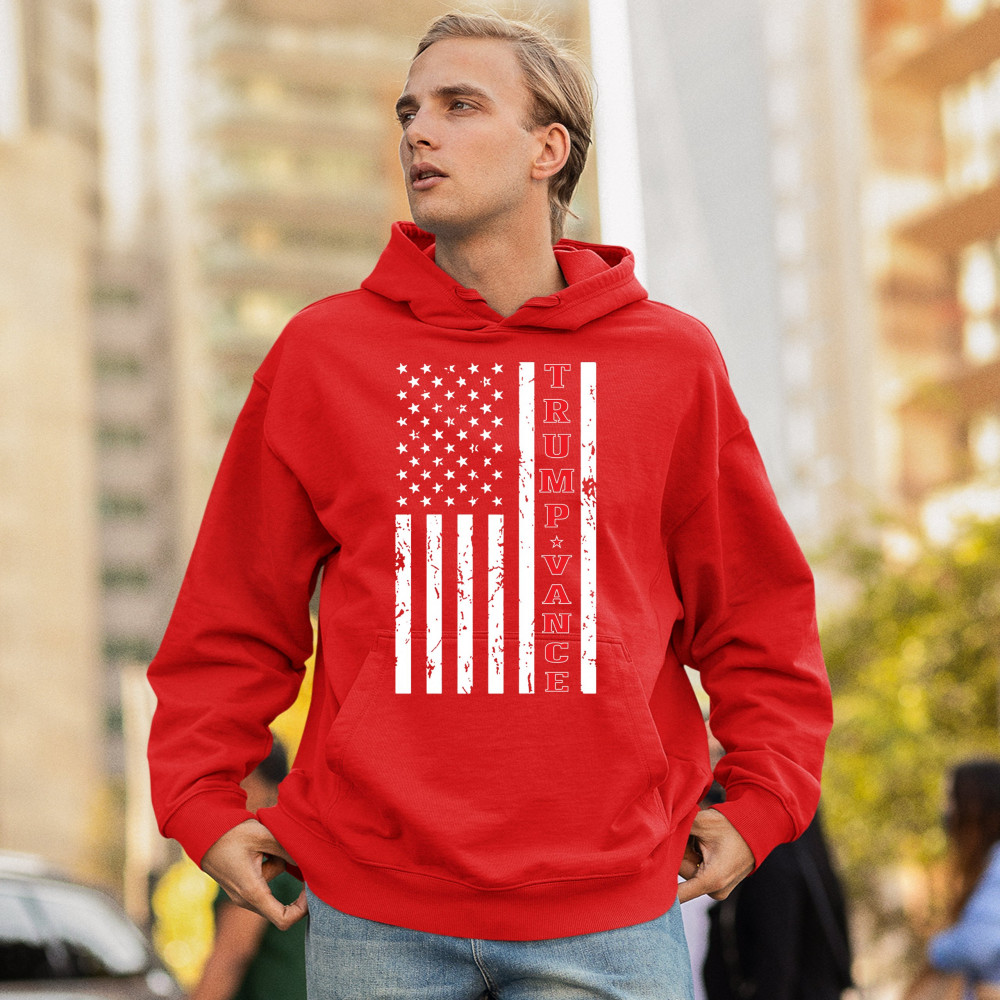 Show your support for Trump Vance 2024 with a bold, rustic American flag design. Perfect for rallies and daily wear. Patriotic and durable.