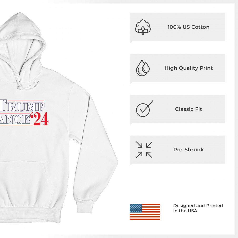 Embrace the spirit of patriotism and support the Trump Vance 2024 campaign with this eye-catching design. The bold red, white, and blue colors combined with a striking flag background make this design perfect for rallies, conservative events, and everyday wear. Crafted with high-quality materials, this design ensures both durability and style. Show your unwavering support and pride for America with the Trump Vance 2024 design. Whether at a rally or in daily life, stand out and make a statement with this unique piece.