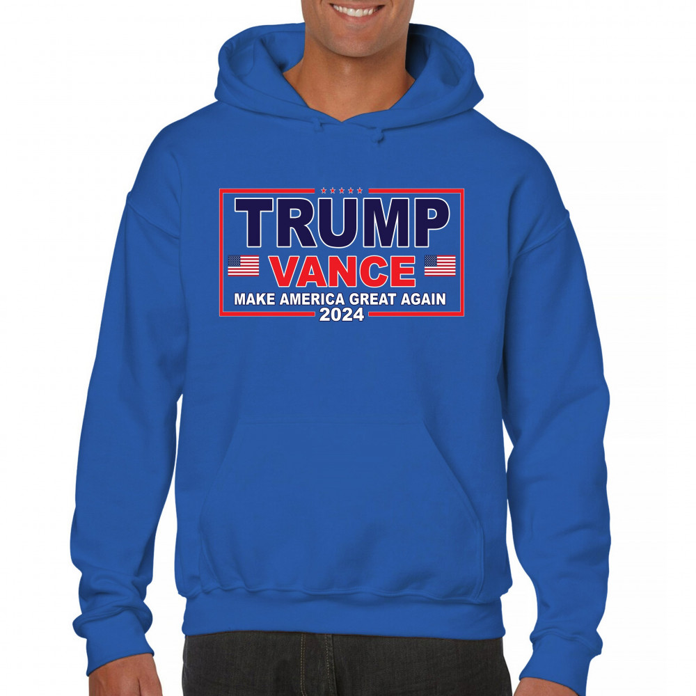 Express your support for the Trump-Vance 2024 campaign with this bold and patriotic design. Highlighting the American flag and the impactful "Make America Great Again" slogan, this design is ideal for those who stand by conservative values. Perfect for attending rallies, political events, or as an everyday statement piece, it symbolizes victory, resilience, and the indomitable American spirit. Show your dedication to the cause and rally fellow supporters with this unique and powerful design. Wear it with pride and make a statement wherever you go.