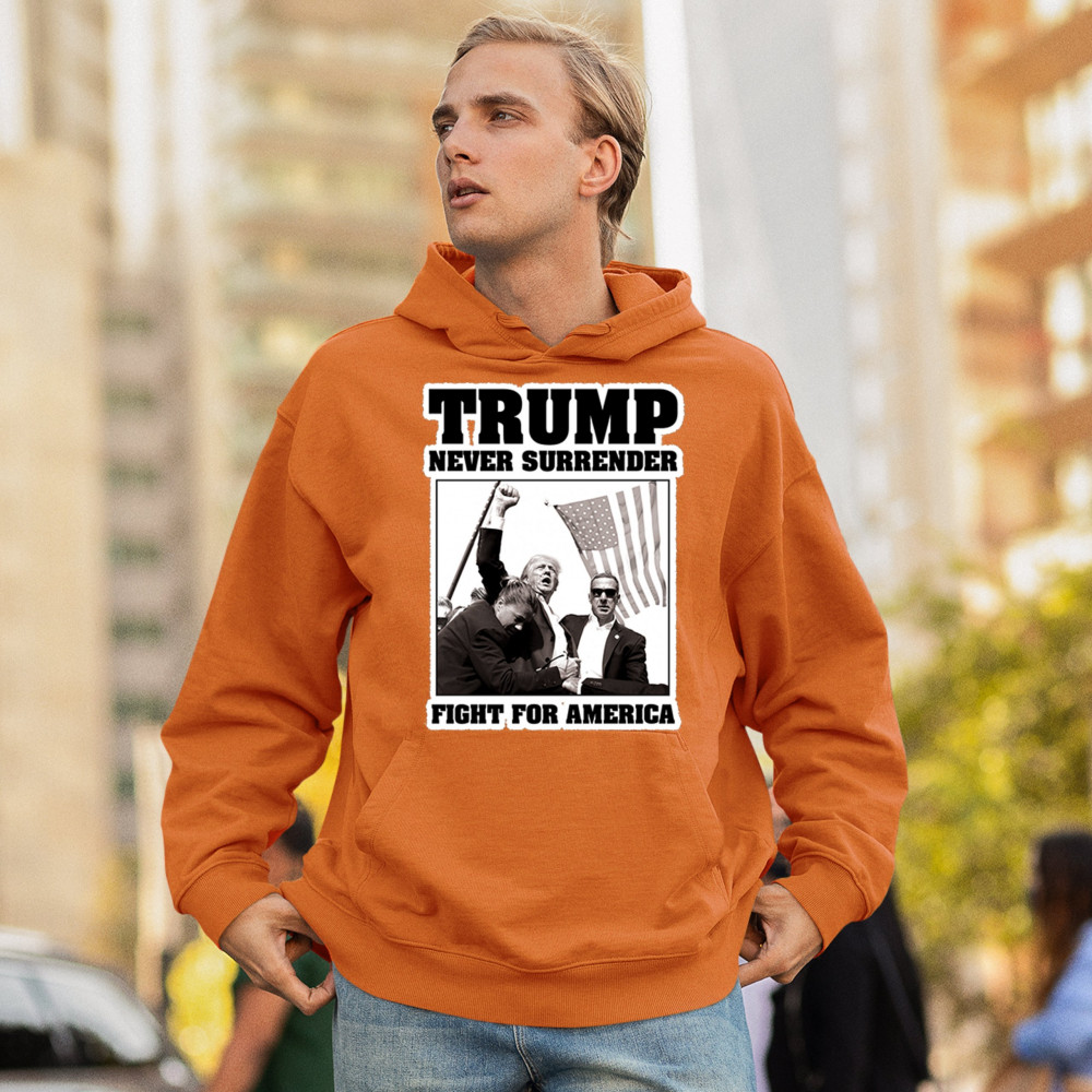 Express your unwavering support with the bold "Trump Never Surrender" design, perfect for rallies and everyday wear. Durable and stylish, show your patriotism proudly.