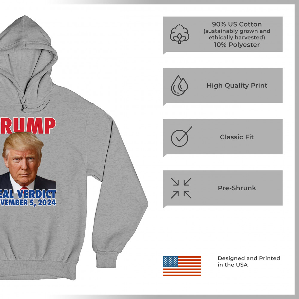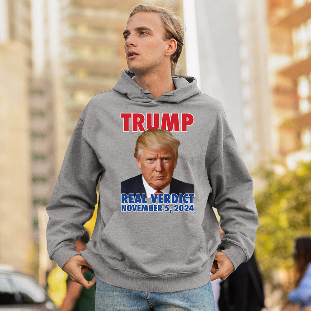 Show your support for Donald Trump with our bold "Real Verdict November 5, 2024" design. Perfect for Trump supporters, MAGA movement enthusiasts, and those who mock Biden with the "Let's Go Brandon" slogan.