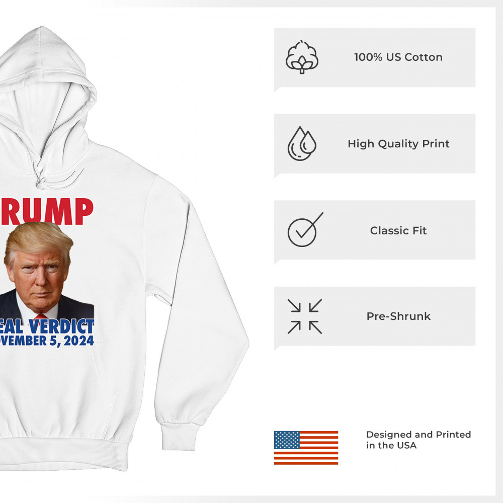 Show your support for Donald Trump with our bold "Real Verdict November 5, 2024" design. Perfect for Trump supporters, MAGA movement enthusiasts, and those who mock Biden with the "Let's Go Brandon" slogan.