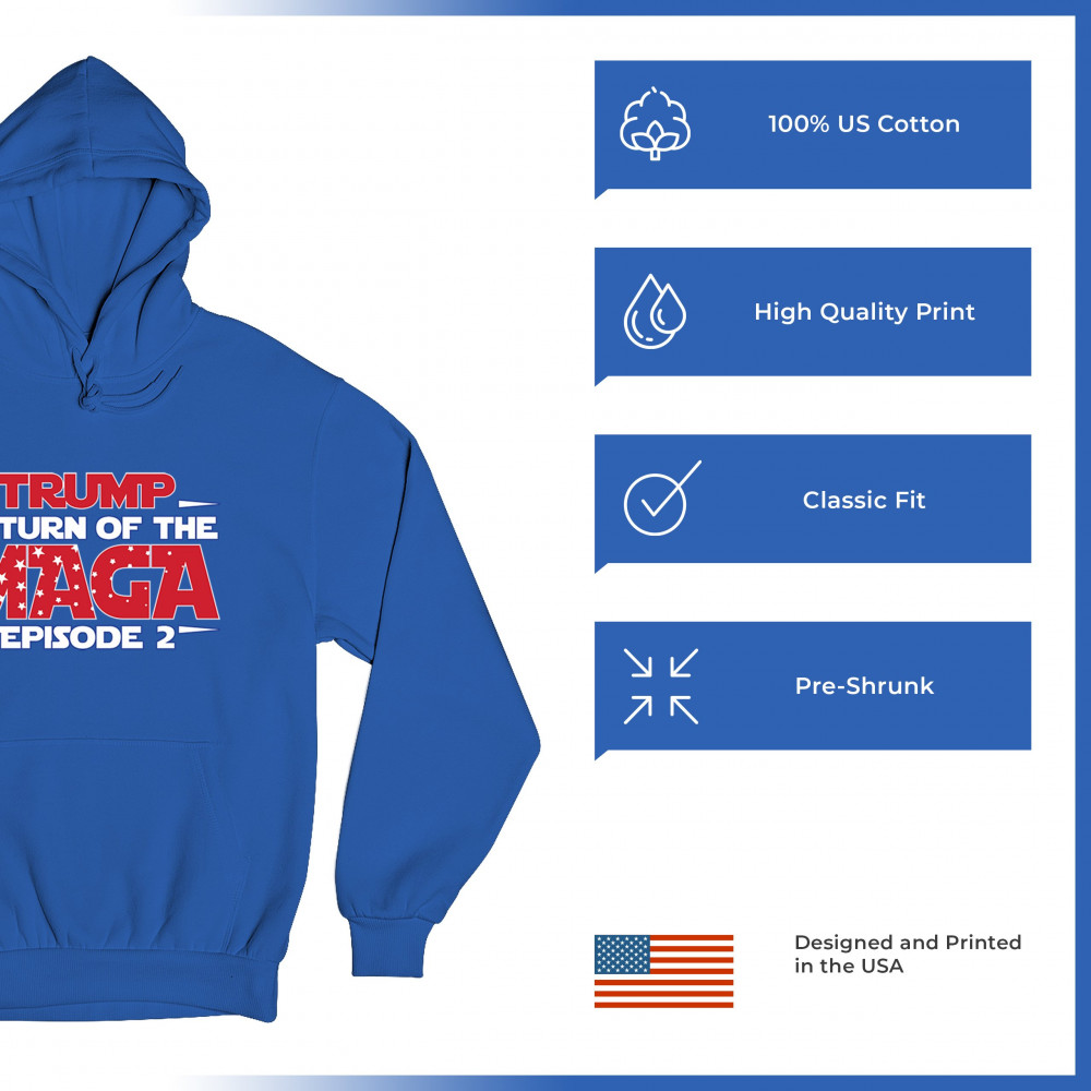 Make a bold statement with the "Return of the MAGA: Episode 2" design, celebrating Donald J. Trump and the Red Wave movement. Perfect for conservatives, Trump supporters, and Republicans who champion America First values, freedom, and the fight for a better future. A must-have for those who never surrender and stand for the people's mandate.