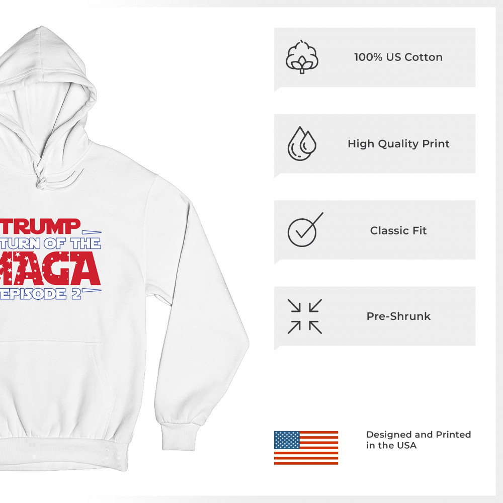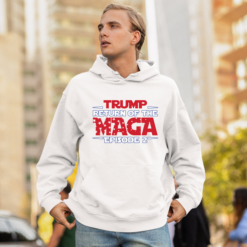 Make a bold statement with the "Return of the MAGA: Episode 2" design, celebrating Donald J. Trump and the Red Wave movement. Perfect for conservatives, Trump supporters, and Republicans who champion America First values, freedom, and the fight for a better future. A must-have for those who never surrender and stand for the people's mandate.