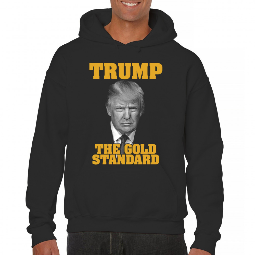 Stand tall with our striking 'Trump The Gold Standard' design, representing the pinnacle of American leadership and excellence. Show your unwavering support as a dedicated Trump supporter and conservative patriot. Ride the victory train towards a brighter future, rallying under the American flag. Trust in God, not in the deceitful government, and let your apparel reflect your commitment to the Republican cause. Join the rebelution against traitors and refuse to surrender to the forces of tyranny. Wear it proudly and declare your allegiance to America first.