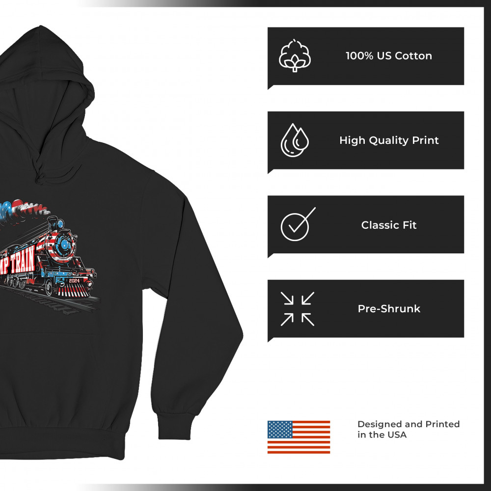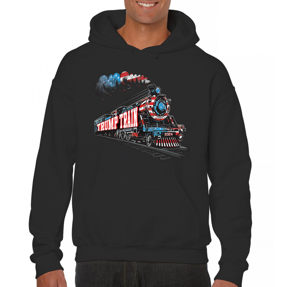Hop on the Trump Train and support America First! This bold, patriotic tee is perfect for Republicans, conservatives, and the Red Wave movement.