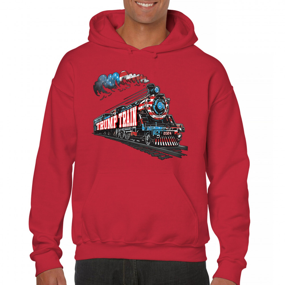 Hop on the Trump Train and support America First! This bold, patriotic tee is perfect for Republicans, conservatives, and the Red Wave movement.