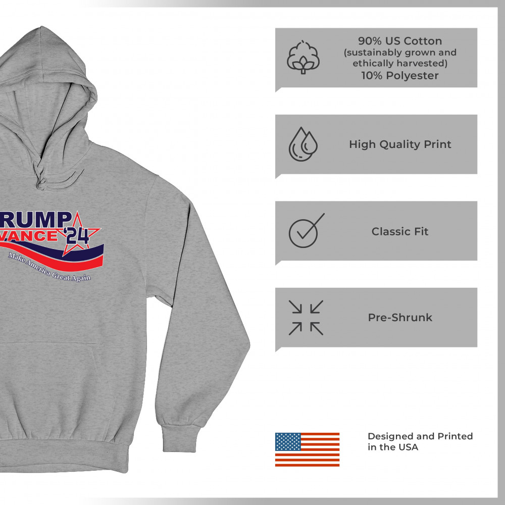 Show your support for Trump-Vance 2024 with this bold design featuring "Make America Great Again." Perfect for rallies and patriotic events.