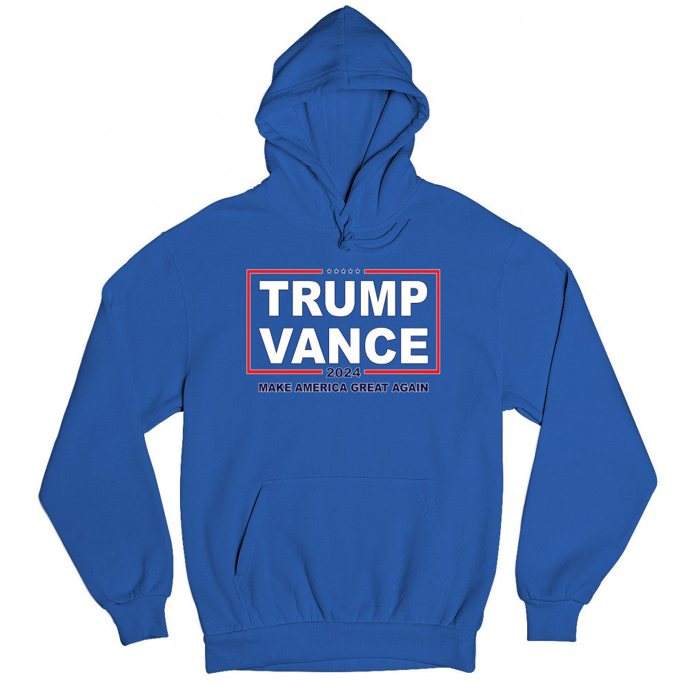 Showcase your support for the Trump-Vance 2024 campaign with this eye-catching design. Emblazoned with the "Make America Great Again" slogan, this artwork is perfect for conservative rallies, political gatherings, or simply expressing your political views. The striking red, white, and blue colors highlight your American pride and dedication to the conservative movement. Comfortable and stylish, this design is a great addition to any wardrobe, allowing you to stand out and make a statement wherever you go.