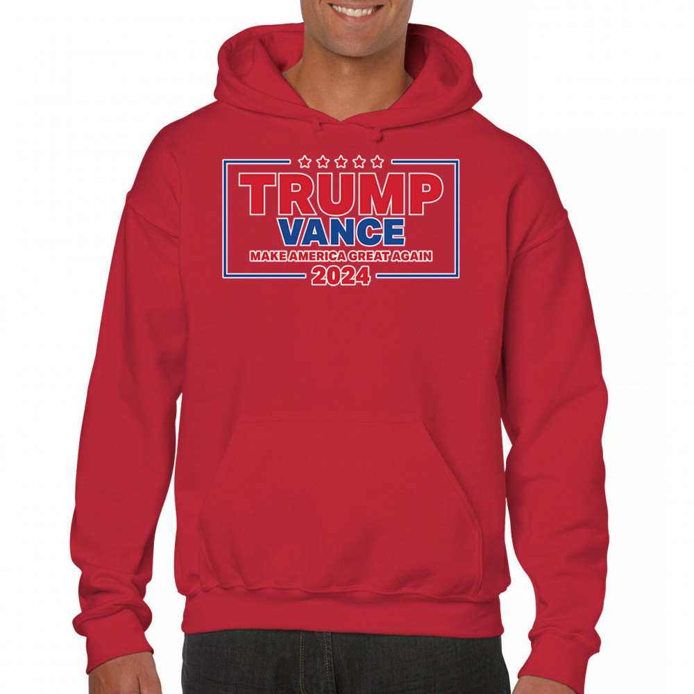 Show your support for Trump-Vance 2024 with this patriotic design featuring the American flag and bold slogan. Perfect for rallies and conservative events.