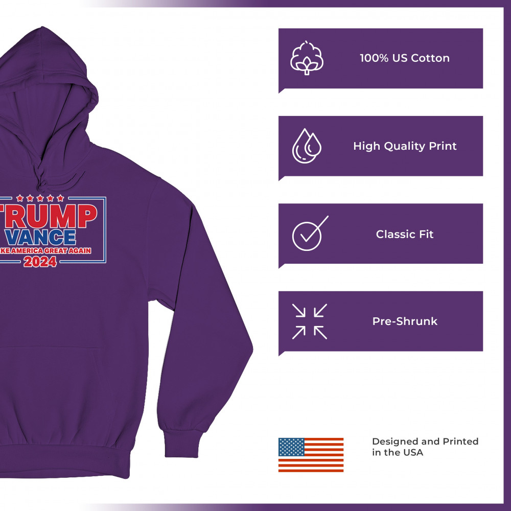 Show your support for Trump-Vance 2024 with this patriotic design featuring the American flag and bold slogan. Perfect for rallies and conservative events.