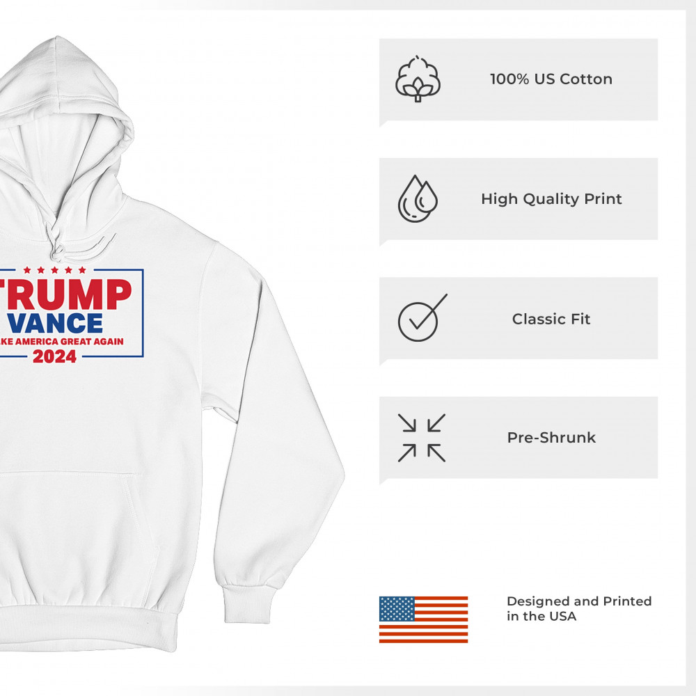 Show your support for Trump-Vance 2024 with this patriotic design featuring the American flag and bold slogan. Perfect for rallies and conservative events.