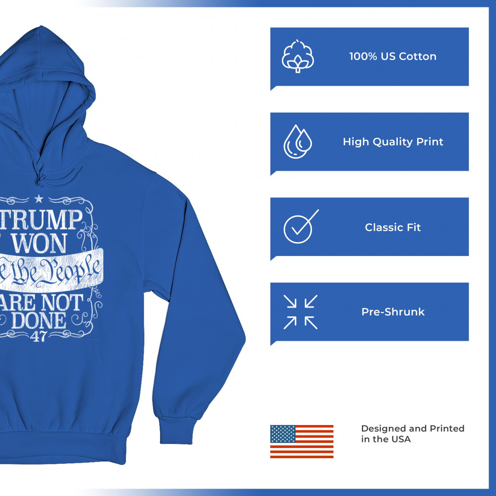 Celebrate the power of "We the People" with this "Trump Won" design, a rallying cry for those who support Donald J. Trump and the Republican movement. Featuring bold typography and a message of resilience, it embodies the conservative fight for victory and unity. Perfect for events, gifts, or everyday wear, it’s a powerful statement of faith in the party of common sense and the people's mandate.