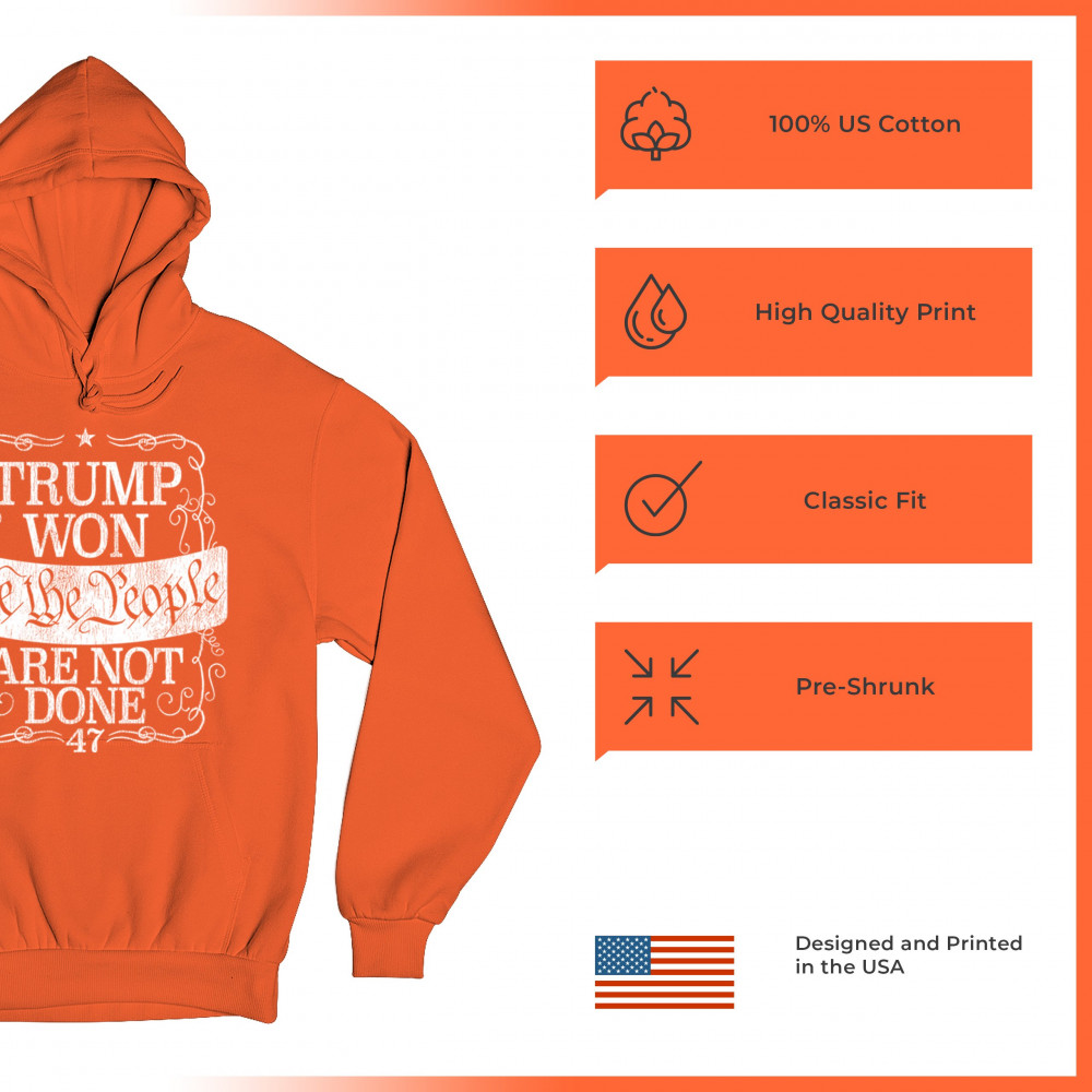 Celebrate the power of "We the People" with this "Trump Won" design, a rallying cry for those who support Donald J. Trump and the Republican movement. Featuring bold typography and a message of resilience, it embodies the conservative fight for victory and unity. Perfect for events, gifts, or everyday wear, it’s a powerful statement of faith in the party of common sense and the people's mandate.