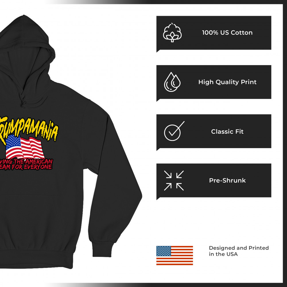 Celebrate the American dream with this powerful "Trumpamania" design. Perfect for rallies and beyond, this design captures the essence of conservatism and the fight for freedom. It’s a testament to the unstoppable spirit of those who trust in God and reject government overreach. With an American flag proudly displayed, this design aligns with the values of victory, rebellion, and unwavering support for Trump.