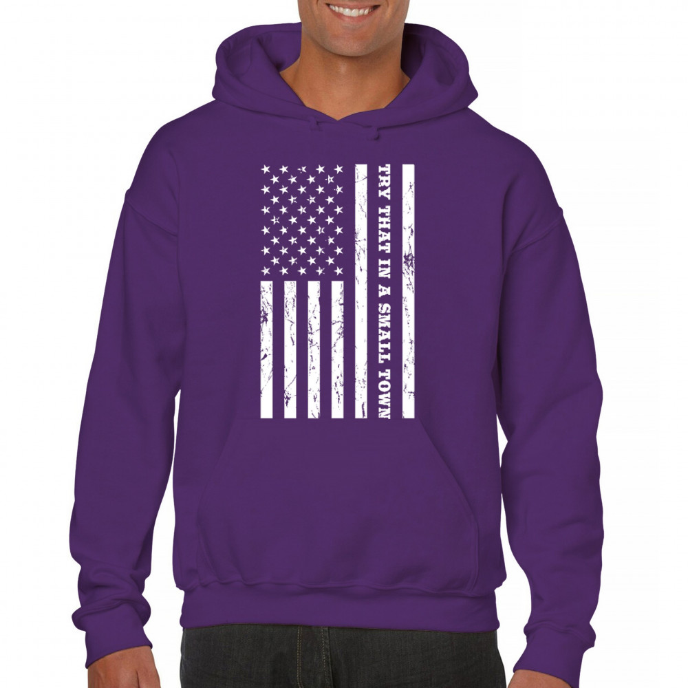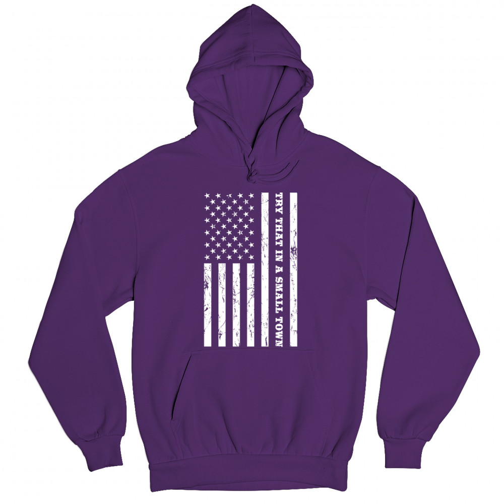 TRY THAT IN A SMALL TOWN GRUNGE AMERICAN FLAG sweatshirt patriotic hoodie purple