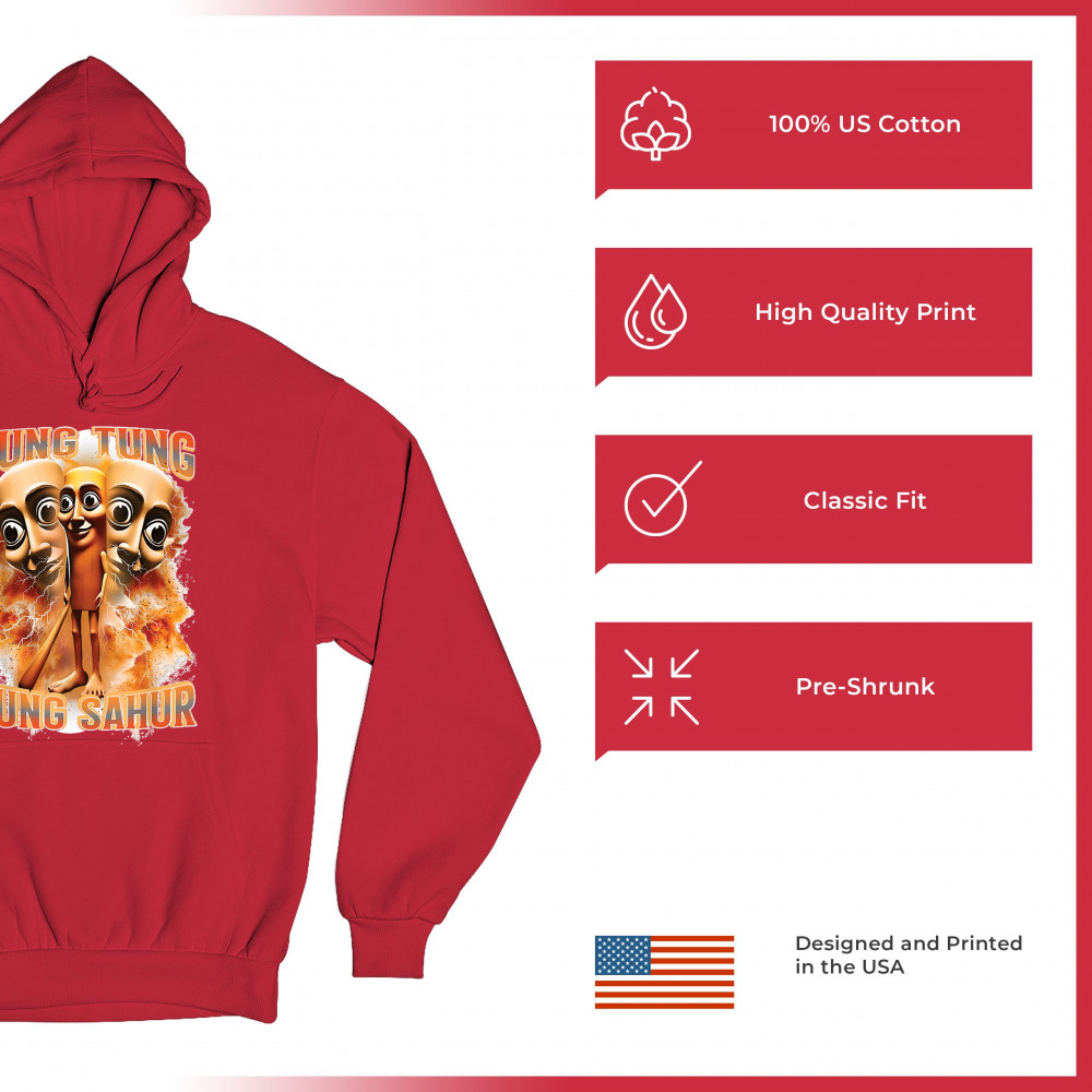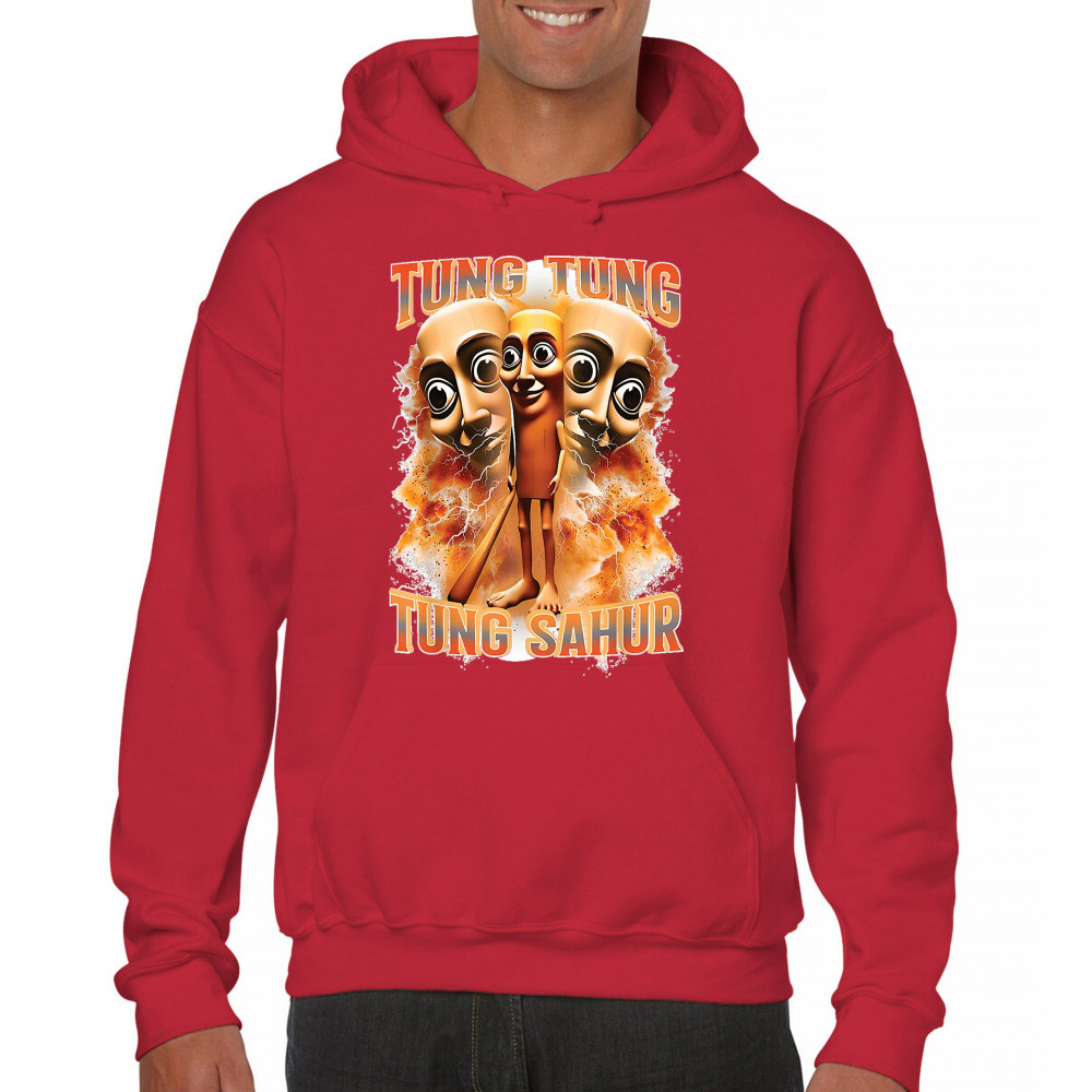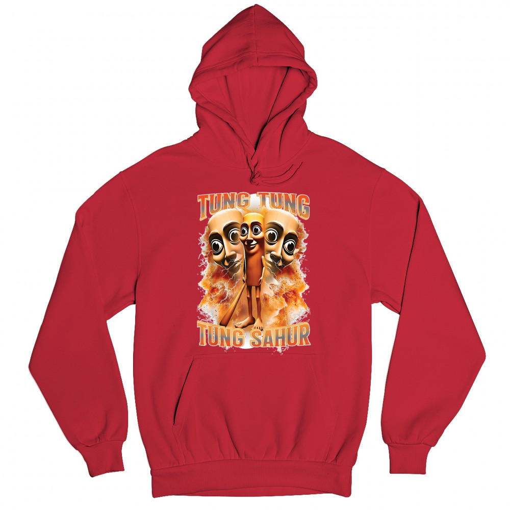 TUNG TUNG TUNG SAHUR unisex hoodie funny italian brainrot meme vibe red