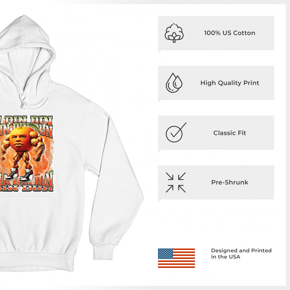 Meet U Din Din Din Din Dun Ma Din Din Din Dun—a jacked-up citrus monstrosity marching straight out of brainrot hell. This design fuses cursed fruit humor, muscle-core absurdity, weirdcore meme style, and TikTok chaos into one deranged fashion statement. Built for meme heads, gym rats with irony, and Gen Z absurdists.