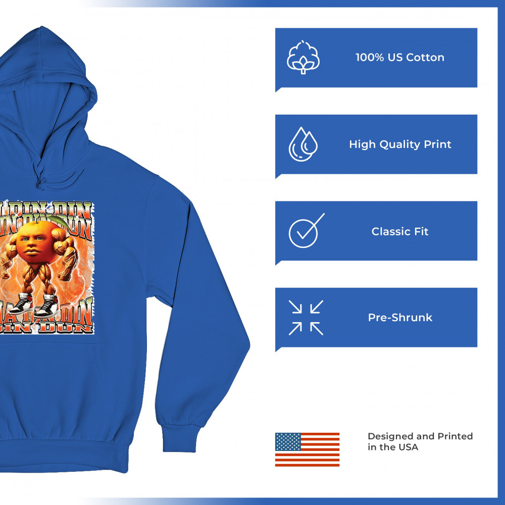 Meet U Din Din Din Din Dun Ma Din Din Din Dun—a jacked-up citrus monstrosity marching straight out of brainrot hell. This design fuses cursed fruit humor, muscle-core absurdity, weirdcore meme style, and TikTok chaos into one deranged fashion statement. Built for meme heads, gym rats with irony, and Gen Z absurdists.