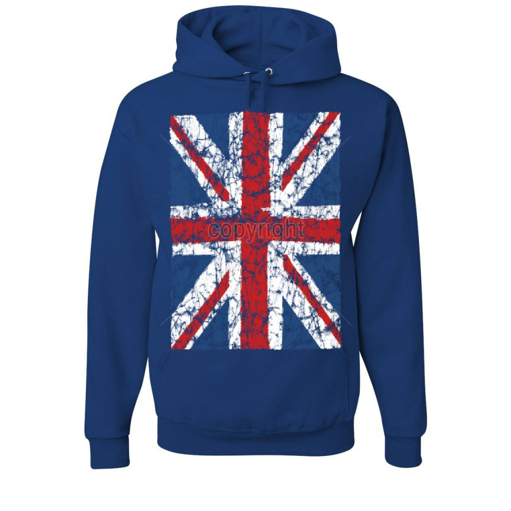 UNION JACK hoodie united kingdom distressed british flag sweatshirt royal blue
