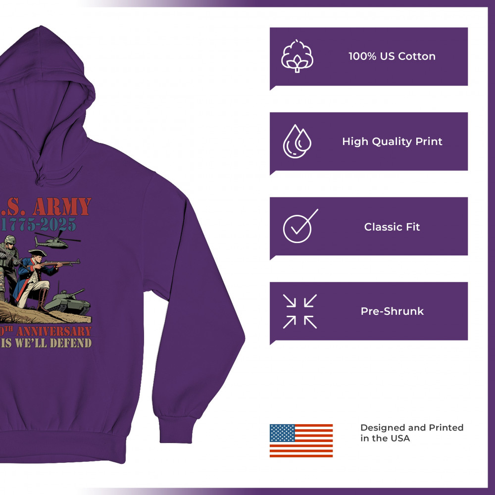 US ARMY 250 ANNIVERSARY unisex hoodie military veteran dd 214 patriotic purple