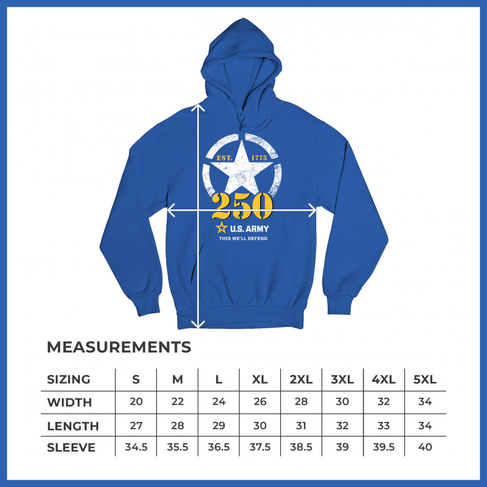 Celebrate 250 years of U.S. Army duty and pride with bold stencil design, EST 1775 mark, and patriotic “This We’ll Defend†motto.