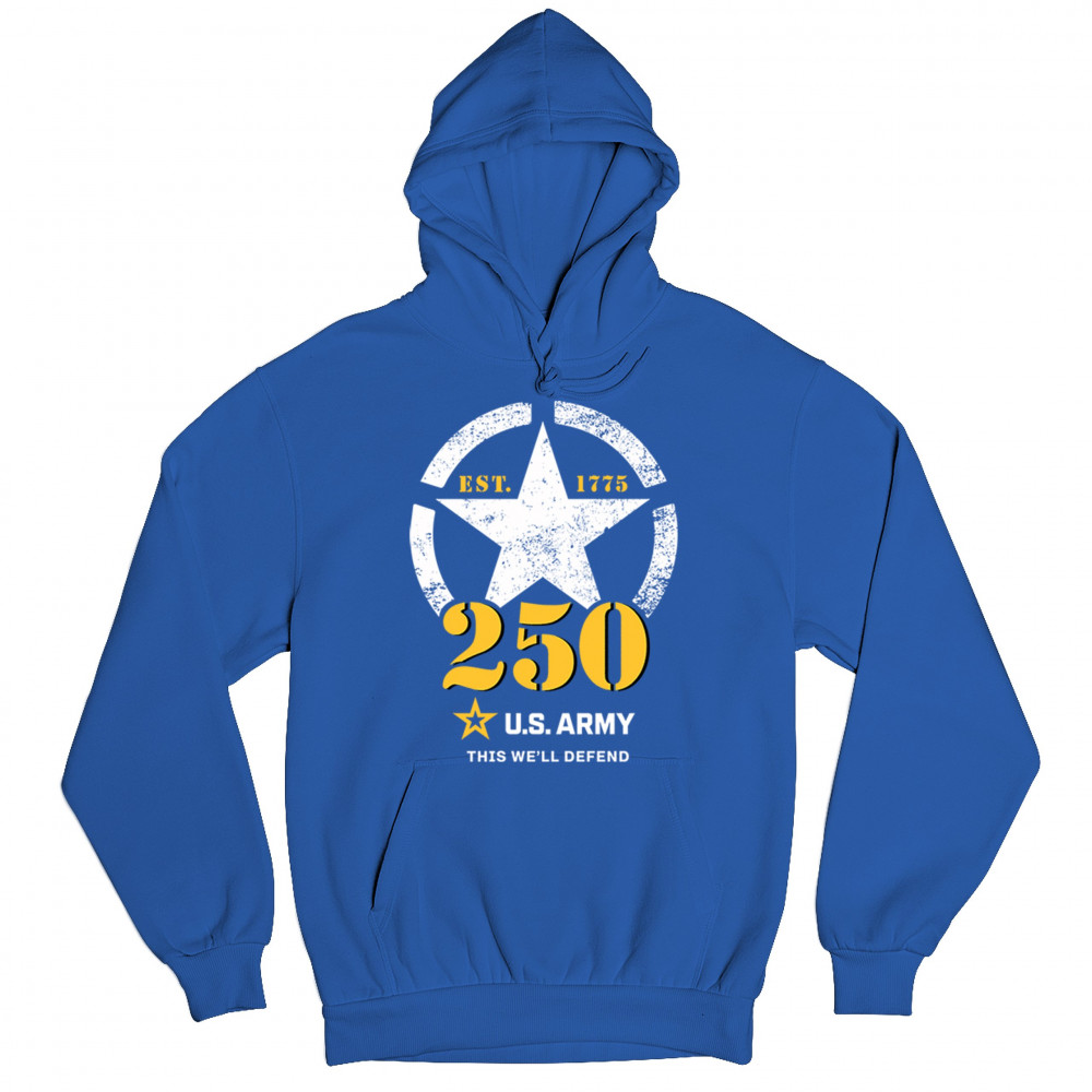 Boldly marking the U.S. Army’s 250th anniversary, this design includes a distressed white star, 1775 EST detail, and bold yellow “250†typeface beneath the iconic motto “This We’ll Defend.†A fitting tribute for veterans, service members, and families who want to show respect and pride during military observances or patriotic events.