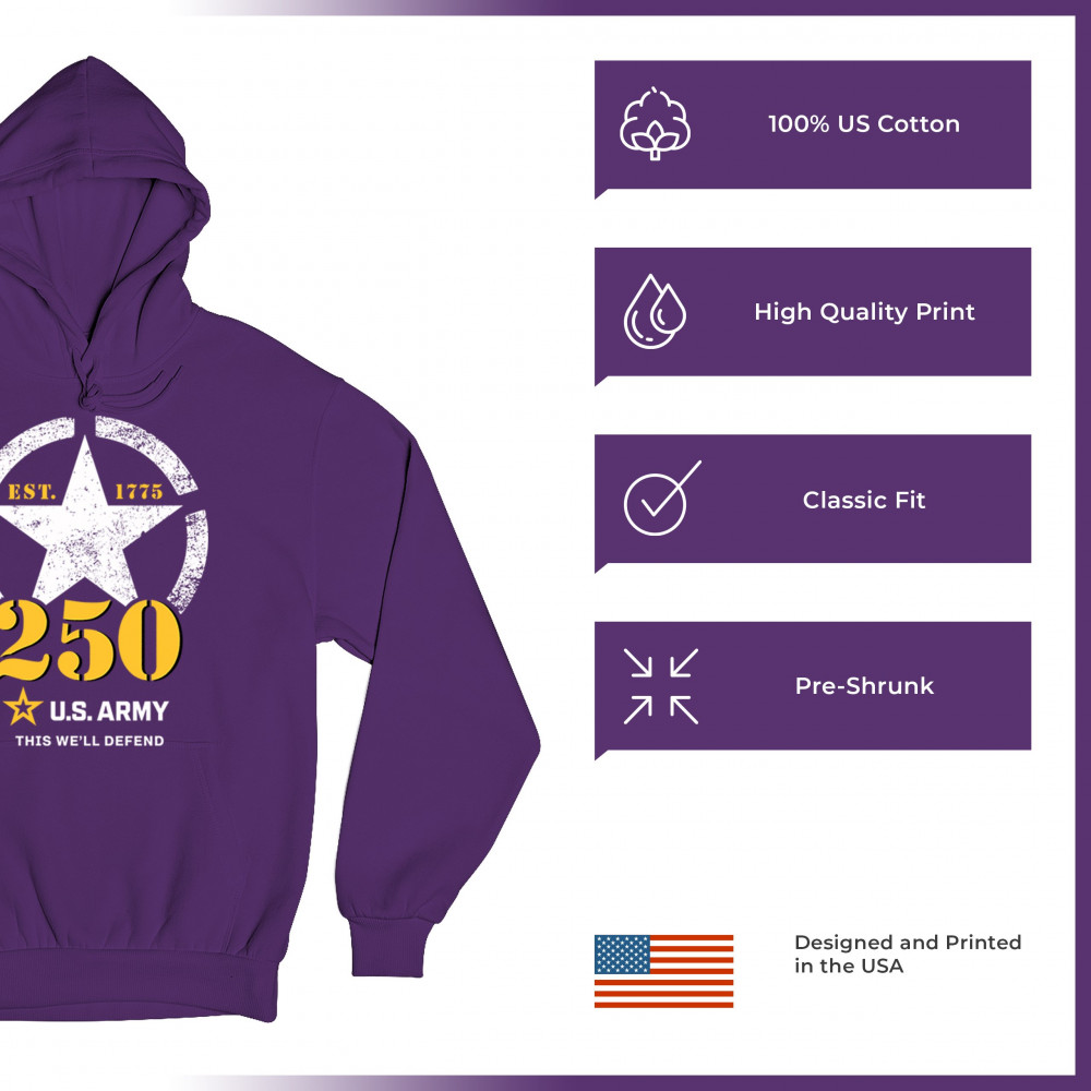 US ARMY 250TH ANNIVERSARY sweatshirt military veteran american pride hoodie purple
