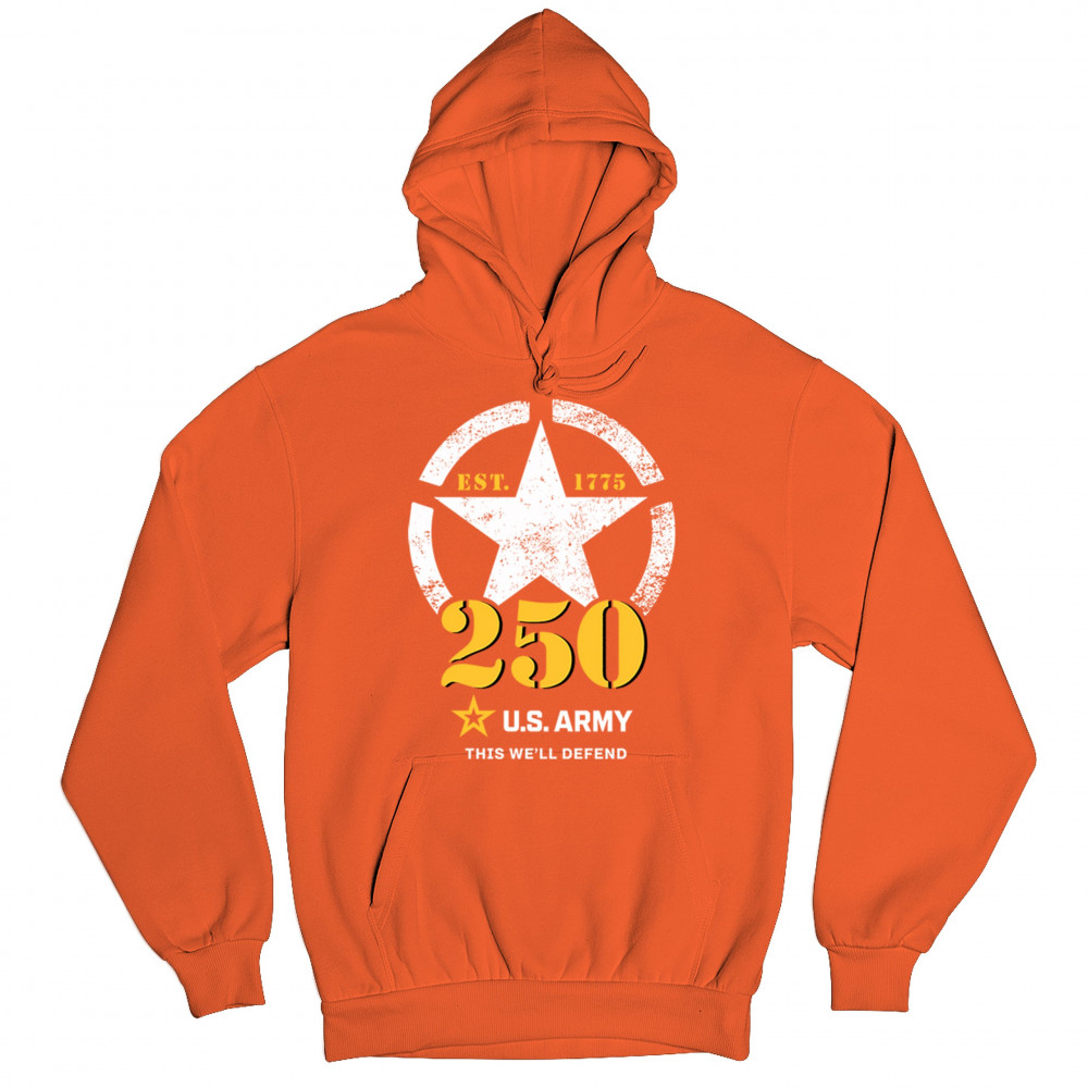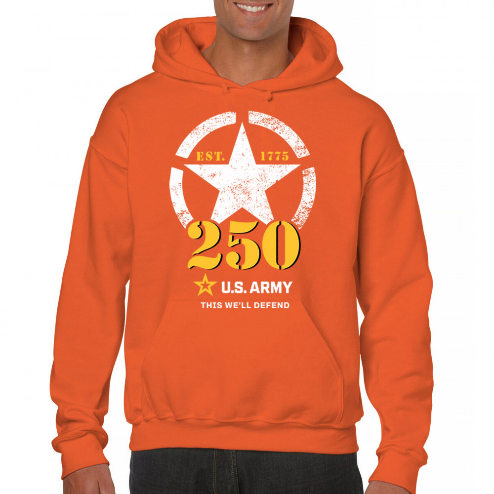 Boldly marking the U.S. Army’s 250th anniversary, this design includes a distressed white star, 1775 EST detail, and bold yellow “250†typeface beneath the iconic motto “This We’ll Defend.†A fitting tribute for veterans, service members, and families who want to show respect and pride during military observances or patriotic events.